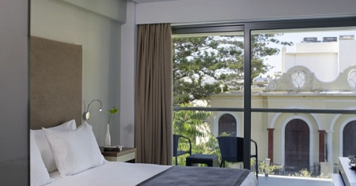 Camerele hotelului sunt mobilate elegant cu pardoseala de gresie sau marmura, spatioase si dotate cu un pat confortabil. Cele mai multe camere au balcon cu vedere la gradina hotelului sau la orasul Rodos. Toate camerele sunt dotate cu baie privata, aer conditionat, dulap, telefon, TV cu ecran plat, frigider, uscator de par si seif. Baia este eleganta si moderna, cu dus cu efect de ploaie.