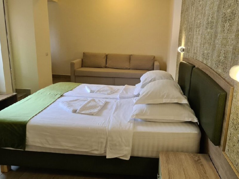 Camera family - suprafata de 24 mp, camera are in componenta pat matrimonial de 180/200 cm, canapea extensibila 160/200 cm ,priveliste panoramica si balcon cu masuta si doua scaune.