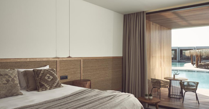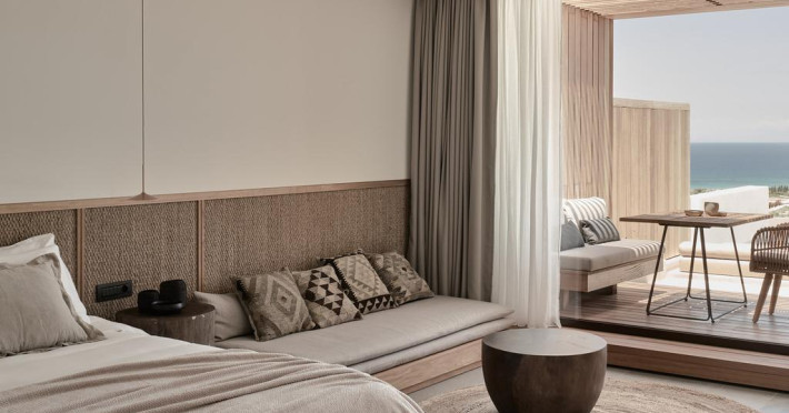 Camerele confortabile de la Olea All Suite Hotel au pardoseală de gresie/ marmură, aer condiționat, Tv cu canale prin satelit și seif. Fiecare cameră dispune de un aparat pentru preparare cafea sau ceai, cană-fierbător și minibar. Oaspeții pot solicita serviciul de room service pentru a servi masa sau diverse băuturi. Unele camere au balcon cu vedere la mare sau la piscină. În camere există baie cu cadă sau duș, foehn, articole de toaletă gratuite, precum și halate de baie și papuci. Oaspeții au acces gratuit la serviciul Wi-fi în camere. Curățenia in cameră se face zilnic. Proprietatea oferă camere pentru nefumători.