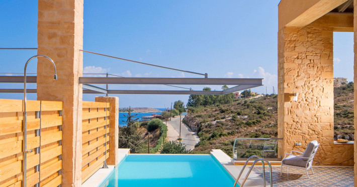 Olea Villas is a small luxury villa estate complete with its own olive grove located in the tranquil Loutraki Bay near the picturesque town of Chania. Immersed in an air of tranquillity, Olea Villas is a contemporary estate of two properties with a unique architectural style combining the local architecture with modern aspects resulting in a spectacular mix of stone exteriors glass and comfortable chic indoors.