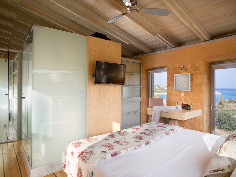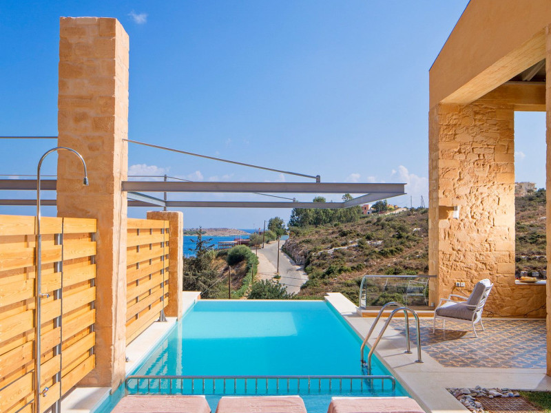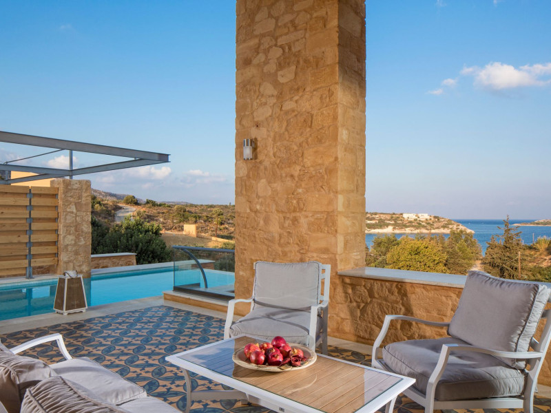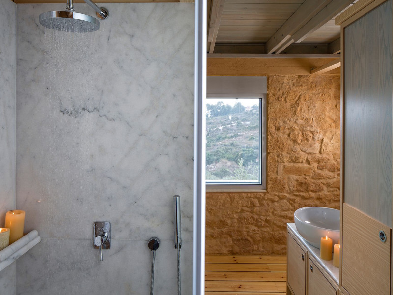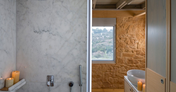 Olea Villas are designed by Aristomenis Varoudakis, one of the most famous architects in Crete, using local materials of wood, stone and glass combined with traditional yet modern craftsmanship. They are an architectural delight, featuring airy rooms with large windows bringing nature to you. The interiors mix simple elegance and beautiful design with comfort and luxury.