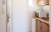 Studio: In cel de-al 2-lea corp se afla 8 studiouri dispuse pe doua niveluri din care 6 permit cazarea unui copil de 12 ani in camera cu 2 adulti. Celelate doua studiouri sunt destinate cazarii a maximum 2 adulti. Cele 8 studiouri sun distribuite in mod egal pe cele 2 niveluri ale vilei.