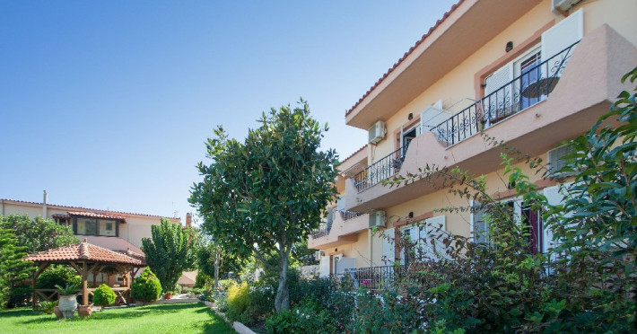 Vila Olga este ideala pentru familiile cu copii fiind localizata extrem de avantajos, atat aproape de oras dar si de plaja Megali Ammos, intr-o gradina superba si ingrijita. Cele doua corpuri de cladire ale Complexului Olga Studios Apartments se afla intr-o gradina cocheta, bine ingrijita si amenajata cu gust.