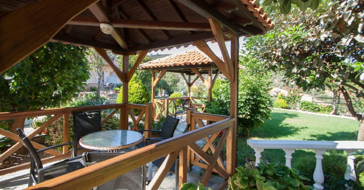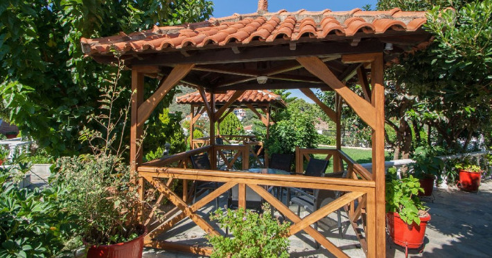 Gradina si camerele sunt intretinute intr-o curatenie si ordine desavarsite. Proprietarii au amenajat si doua foisoare unde turistii se pot relaxa dupa o zi istovitoare de vacanta si unde pot sa se bucure de adierile brizei si parfumurile insulei si a gradinii, parfumuri, arome si privelisti dupa care ospetii vor tanji si de care isi vor aminti cu placere mai tarziu cand se vor fi intors din vacanta.