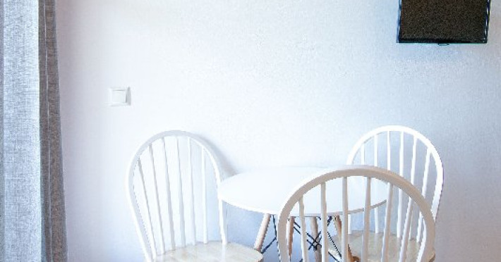 Facilitati camere: toate camerele sunt confortabile, fiind mobilate foarte practic si placut, pentru a avea toate facilitatile necesare. Fiecare camera are TV, aer conditionat (contra cost la fata locului, pentru care se plateste optional la proprietar 35 euro pe camera/ saptamana), baie cu dus, balcon la studiouri si terasa la apartamente, chicineta dotata cu plita, frigider, hota, filtru de cafea si vesela, WiFi.