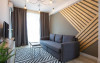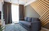 Apartament executive cu o suprafata de 45 mp. Compus din living cu canapea extensibila, bucatarie, dormitor cu pat matrimonial si baie. Poate acomoda pana la 3 persoane. Mobilat ultramodern si complet utilat, pentru confortul deplin al oaspetilor.
