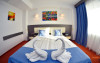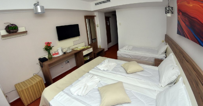 - Camerele family  sunt dotate cu un pat matrimonial si un pat  pentru copil - 70/150, televizor, seif,  minibar, telefon, fierbator cafea/ceai, aer conditionat, internet wi-fi, baie proprie cu cabina de dus si uscator de par, balcon dotat cu masuta cu 2 scaune si uscator de rufe.