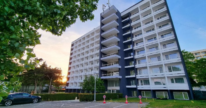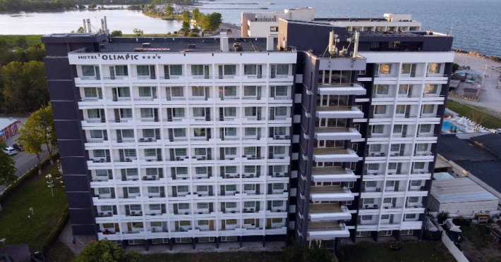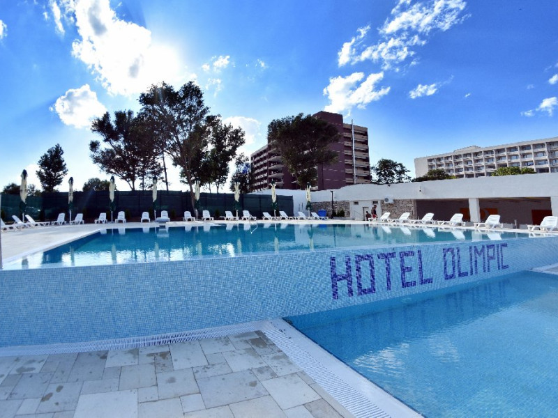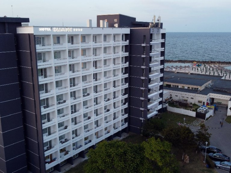 Descriere: Complexul Olimpic a fost renovat in anul 2018ofera 200 de spatii de cazare distribuite pe 8 etaje si 24 de apartamente a cate 2 camere. Prin arhitectura si pozitionarea hotelului, camerele beneficiaza de vedere panoramica spre Marea Neagra si catre lacul de agrement Tismana. Camerele hotelului Olimpic au balcon si sunt dotate cu mobilier nou, sistem de acces pe baza de cartela magnetica, aer conditionat centralizat, internet wireless, TV LCD si cablu, minibar, telefon, seif, fierbator cafea/ceai, baie proprie cu cabina de dus, uscator de par. Restaurantul hotelului se afla in imediata vecinatate a plajei, oferind o priveliste minunata catre Marea Neagra. Restaurantul serveste o gama variata de preparate culinare inspirate din bucataria romaneasca si cea internationala, produse de patiserie si cofetarie si are dotare scaune speciale pentru copii (in limita disponibilitatii). Pe plaja sunt amenajate un loc de joaca multifunctional pentru copii si o terasa. In vecinatatea plajei sunt doua piscine (adulti si copii) cu arhitectura moderna si vedere infinity si cu apa incalzita (in lunile iunie si septembrie), dotate cu un bar care functioneaza in regim all inclusive.