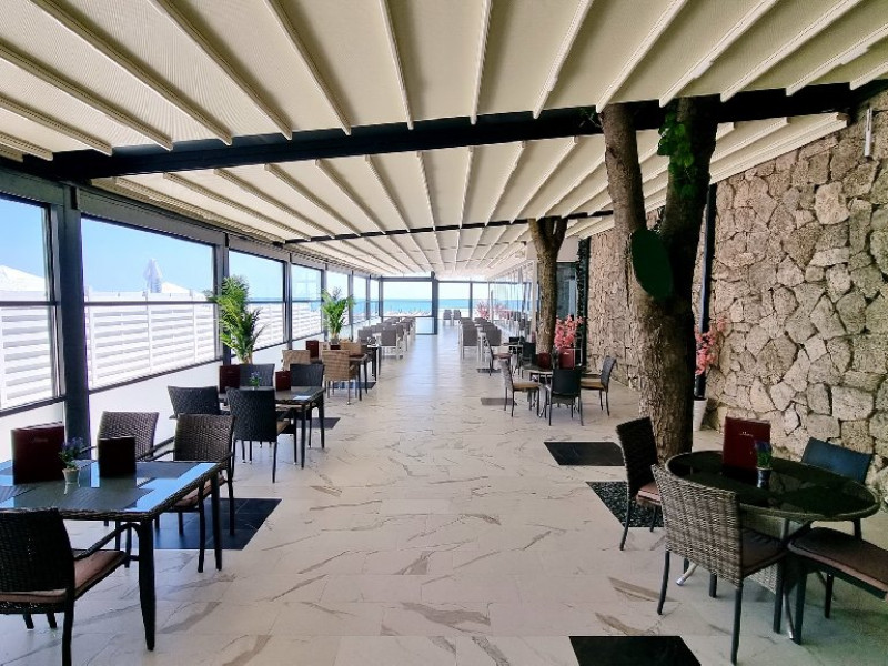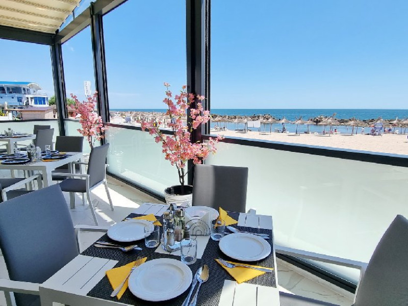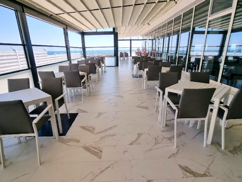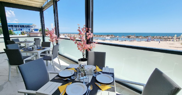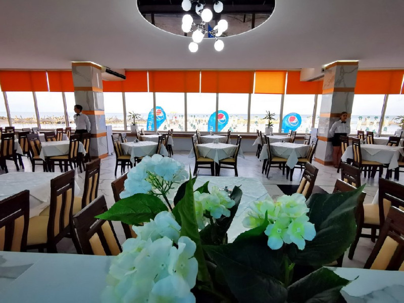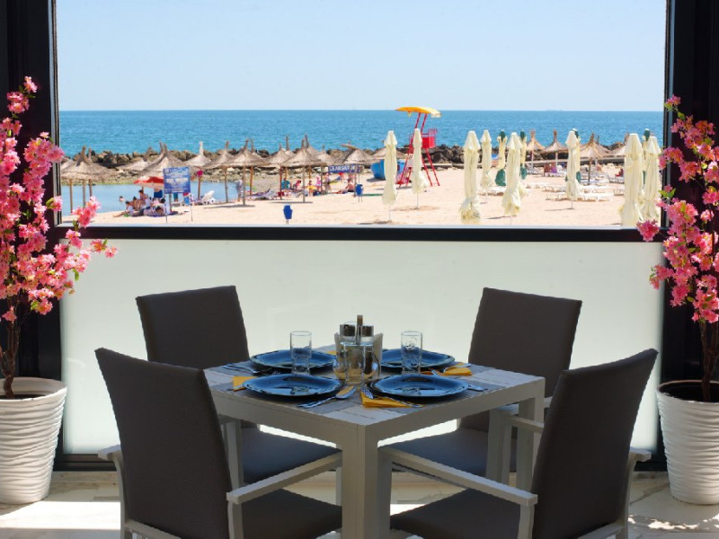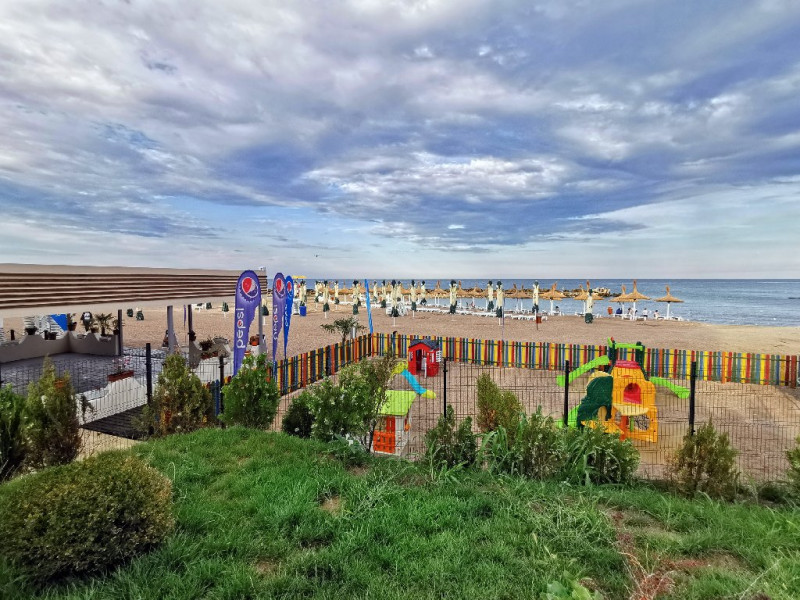 Sector plaja a plaja privata, umbrele, sezlonguri, loc de joaca pentru copii, activitati sportive, terasa-bar in regim a la carte.