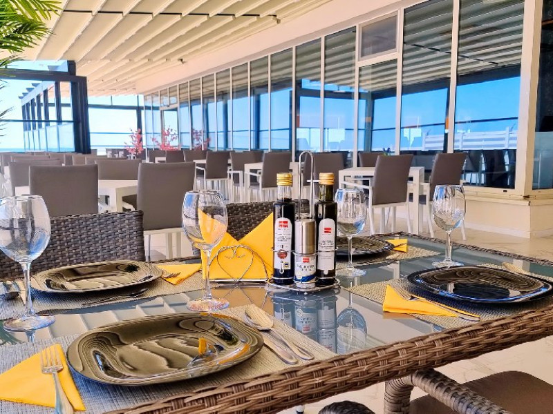 In afara de restaurantul Olimpic, complexul dispune si de terasa ce ofera o vedere spectaculoasa spre mare. La aceasta terasa turistii pot servi masa a A LA CARTE a- CONTRA COST .