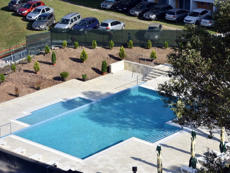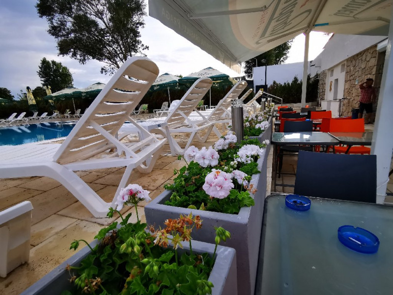 - Piscinele sunt exterioare si cu apa incalzita in lunile iunie, septembrie si in functie de temperatura;