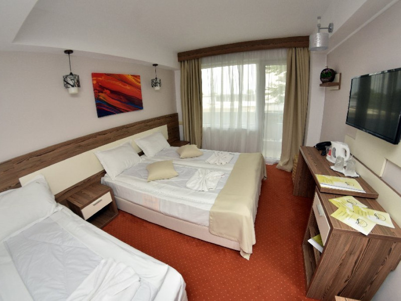 Pachetul cu all inclusive include: cazare, mic dejun, pranz si cina (bufet suedez), bauturi alcoolice si non alcoolice incluse in timpul meselor in restaurantul hotelului, acces gratuit la piscina si la plaja cu 2 sezlonguri/camera, la locurile exterioare pentru copii 3-12 ani, la locul interior de joaca cu animatie, activitati specifice si supraveghetor pentru copii 3-8 ani, parcare gratuita (in limita disponibilitatii), internet wi-fi gratuit in spatiile publice (restaurant, receptie, bar, terasa, plaja), acces la biliard, tenis de masa (in limita disponibilitatii), program de fitness gratuit in aer liber cu garantie. Seara se vor desfasura spectacole pentru copii in incinta locului de joaca interior si in spatii dedicate.