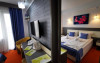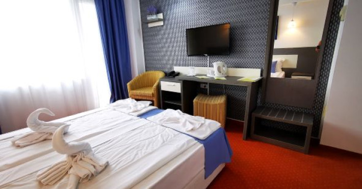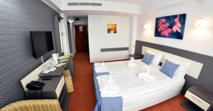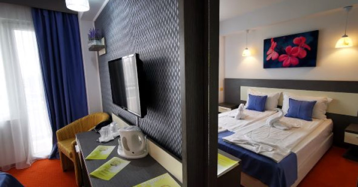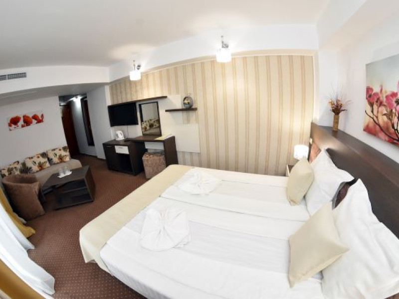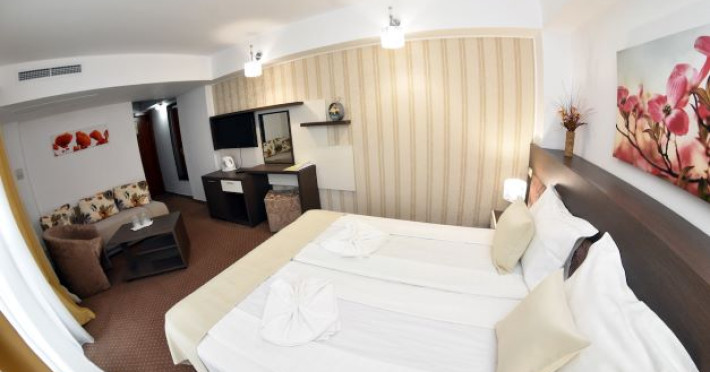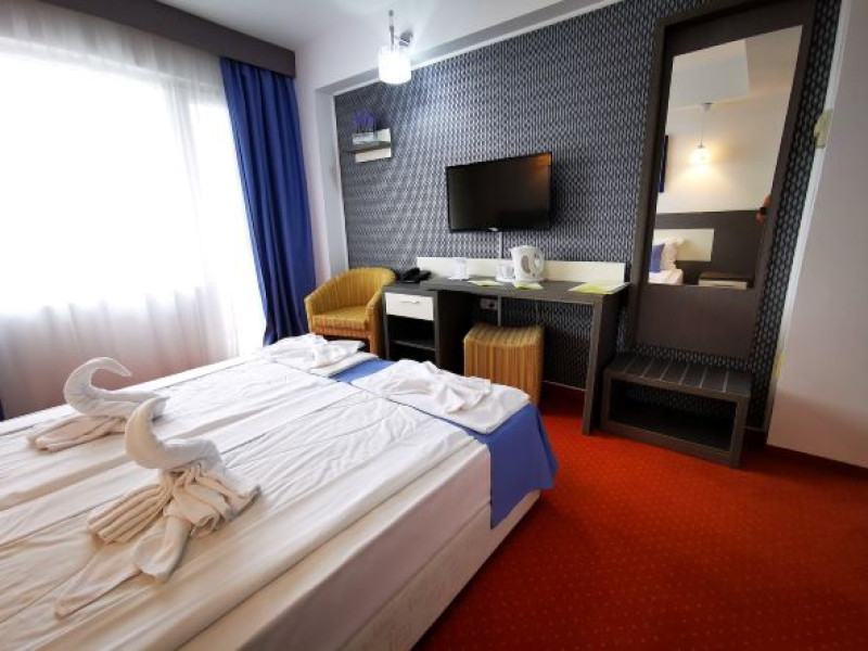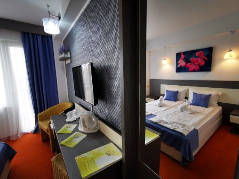Hotel Olimpic este pozitionat in centrul statiunii Jupiter, in imediata apropiere a plajei. Hotelul a fost renovat si modernizat. Complexul Olimpic va ofera 200 de spatii de cazare distribuite pe 8 etaje si 24 de apartamente a cate 2 camere. Prin arhitectura si pozitionarea hotelului, camerele beneficiaza de vedere panoramica spre Marea Neagra si catre lacul de agrement Tismana. Camerele hotelului Olimpic au balcon si sunt dotate cu mobilier nou, sistem de acces pe baza de cartela magnetica, aer conditionat centralizat, internet wireless, TV LCD si cablu, minibar, telefon, seif, fierbator cafea/ceai, baie proprie cu cabina de dus, uscator de par. Restaurantul hotelului se afla in imediata vecinatate a plajei, oferind o priveliste minunata catre Marea Neagra. Restaurantul serveste o gama variata de preparate culinare inspirate din bucataria romaneasca si cea internationala, produse de patiserie si cofetarie si are in dotare scaune speciale pentru copii (in limita disponibilitatii). Pe plaja sunt amenajate un loc de joaca multifunctional pentru copii si o terasa. In vecinatatea plajei sunt doua piscine (adulti si copii) cu arhitectura moderna si vedere infinity si cu apa incalzita (in lunile iunie si septembrie), dotate cu un bar care functioneaza in regim all inclusive. Complexul Olimpic va asigura urmatoarele sectoare de agrement: Sector plaja – plaja privata, umbrele, sezlonguri, loc de joaca pentru copii, activitati sportive, terasa-bar in regim a la carte. Sector piscina – piscina adulti, piscina copii, bar piscina (in regim all inclusive), activitati distractive (aqua gym) si animatie. Sector relaxare - billiard, tenis de masa, air hokey, mese de foosball, jocuri electronice tip XBOX, sah, table, remy, darts. Sector copii - Programul distractiv pentru copii si face paiting se va desfasura la locul de joaca interior si spatii dedicate. Sector fitness exterior – aparate fitness, benzi de alergat, biciclete, aparate multifunctionale. Activitati artistice – spectacole de dans si muzica pentru adulti si copii, numere de magie cu profesionisti in domeniu, divertisment, expozitie caricatura umoristica (Costel Patrascan).Datorita dinamicitatii domeniului disponibilitatea ofertelor se modifica de la un moment la altul. De aceea ofertele sunt valabile in limita locurilor disponibile. Agentia nu este responsabila pentru eventualele neconcordante care pot aparea intre informatiile privind tarifele si alte detalii din site si informatiile primite in agentie. In aceste cazuri vor avea prioritate, intotdeauna, informatiile primite in agentie.