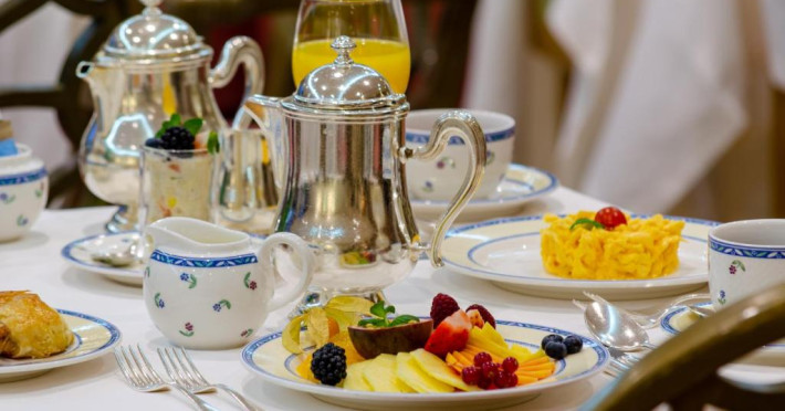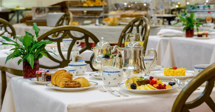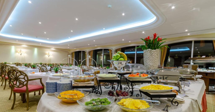Restaurantul hotelului Lapa servește preparate din bucătăria mediteraneană rafinată și vinuri regionale, iar Le Pavillion servește vara cocktailuri, ceaiuri cu gheață preparate in casă și sucuri de fructe, in jurul piscinei. In zilele mai calde, masa poate fi salvată pe terasă. Seara se oferă muzică live.