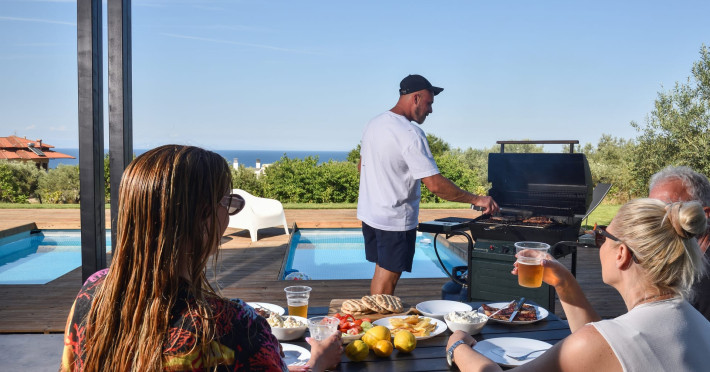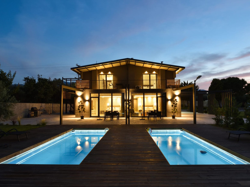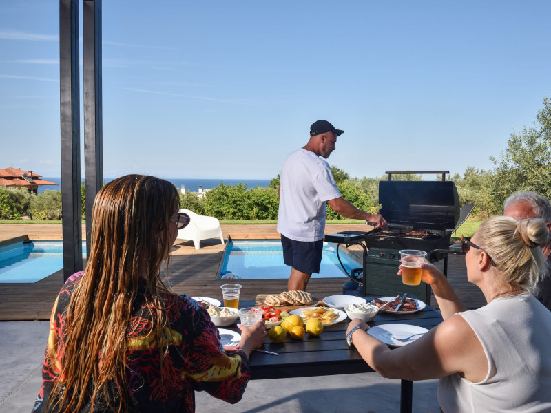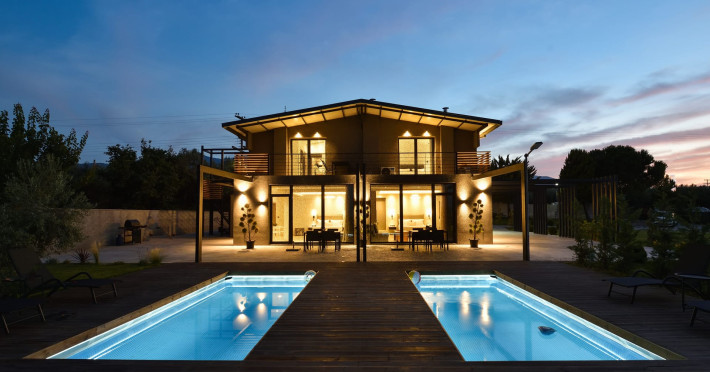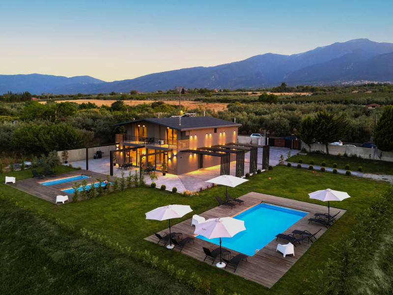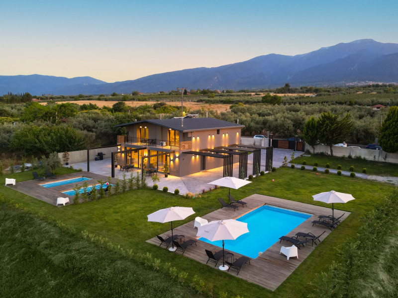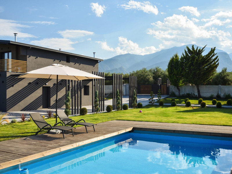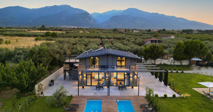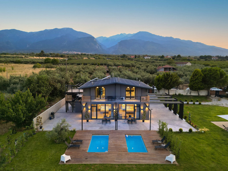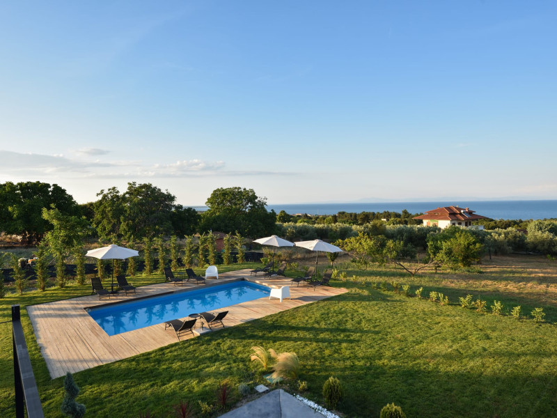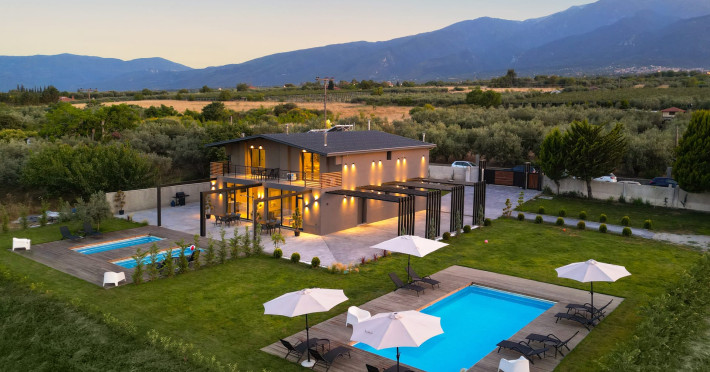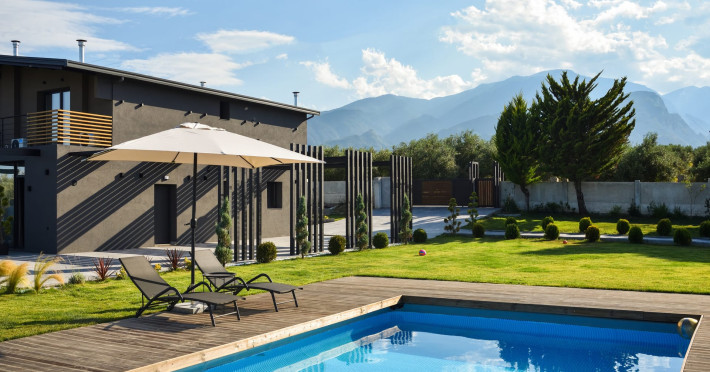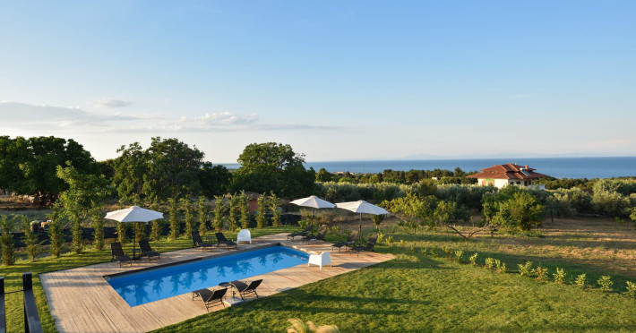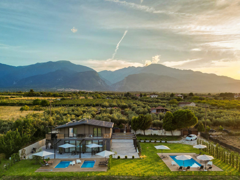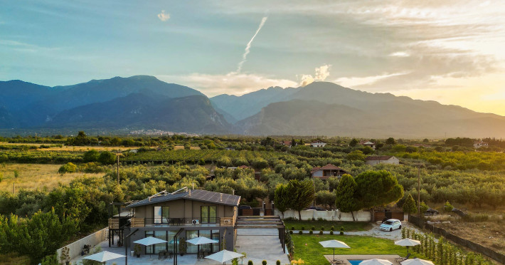 Welcome to Olive All Seasons Suites, Panel Hospitality Homes & Villas in Litochoro, Olympus Riviera, Greece. Set in a large private plot with lush vegetation, overlooking Olympus Mountain and the sea from an elevated position, this brand new property combines high-end accommodation with privacy and tranquility. Just 5' from Litochoro and the sea, we are welcoming you to a peaceful oasis of relaxation and hospitality. Olive All Seasons Suites, Panel Hospitality Homes & Villas offers 6 suites that can accommodate from 4 to 8 persons. All 6 suites share a large swimming pool with sunbeds, umbrellas and towels, while two of the suites feature their own private swimming pools.