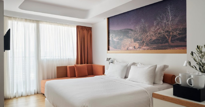 Descriere: Olive Green Hotel este un hotel modern si sustenabil situat in inima orasului Heraklion, combinand tehnologia inteligenta cu respectul fata de mediu si traditia cretana. Hotelul promoveaza un stil de viata eco-friendly, fiind un exemplu de practici durabile pentru turisti si localnici deopotriva. Atmosfera contemporana, camerele elegante si facilitatile urbane creeaza un cadru placut pentru un sejur atat de relaxare, cat si de explorare urbana.Localizare: Olive Green Hotel este situat in centrul orasului Heraklion, foarte aproape de principalele puncte de interes ale capitalei Cretei Muzeul Arheologic, Piata Morosini si alte atractii locale si la scurta distanta de port. Aeroportul International Heraklion este de asemenea usor accesibil din hotel, oferind o baza excelenta pentru explorarea orasului si imprejurimilor.