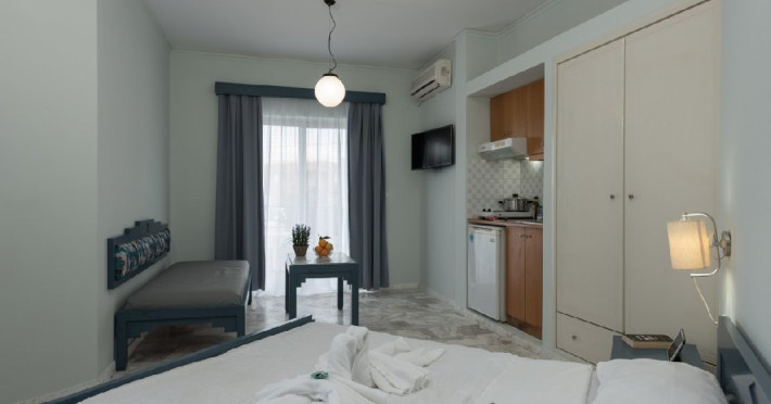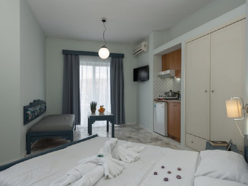 HOTELUL OLIVIA dispune de studiouri si apartamente cu balcon/terasa, mini bucatarie cu frigider, facilitati pentru pregatirea cafelei, aer conditionat (gratuit), televizor, baie cu uscator de par, acces WiFi (gratuit).