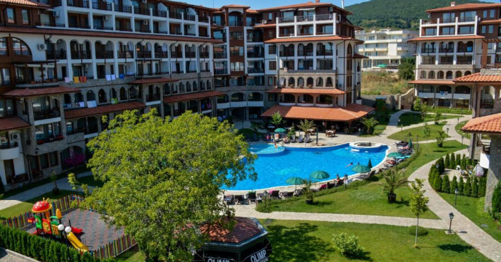 Amplasat în Sveti Vlas, Olymp Aparthotel se află la 400 m de plaja Sveti Vlas și oferă apartamente cu aer condiționat, grădină și terasă în aer liber. Proprietatea are servicii de recepție cu program non - stop și închirieri auto. Se oferă acces gratuit la internet Wi-fi în spațiile publice. Parcarea este disponibilă la proprietate gratuit.