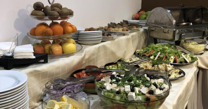 La Olymp Hotel oaspeții au la dispoziție un restaurant care servește mâncare în stil bufet și à la carte. Preparate din bucătăria grecească așteaptă să fie degustate în fiecare zi. Masa poate fi servită atât în interior, cît si în aer liber, pe terasă, în funcție de vreme. Oaspeţii pot avea diverse băuturi răcoritoare sau alcoolice la bar.