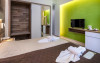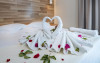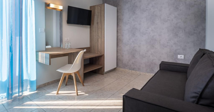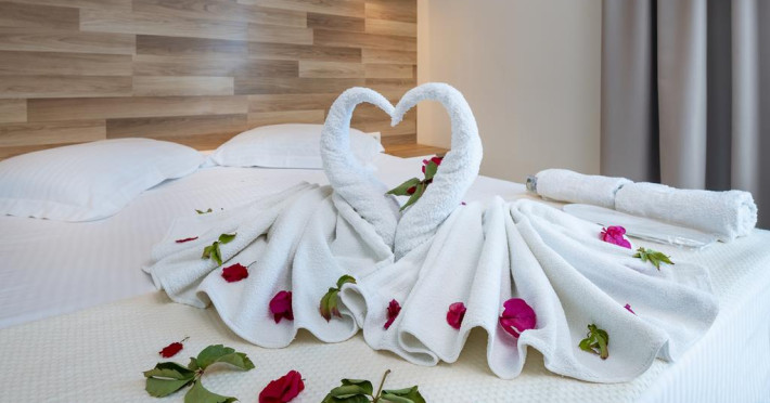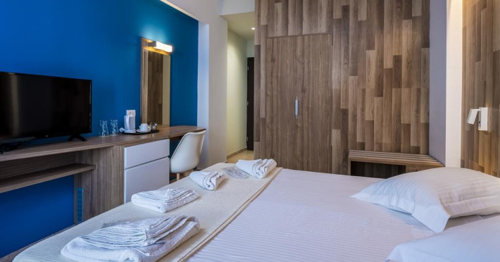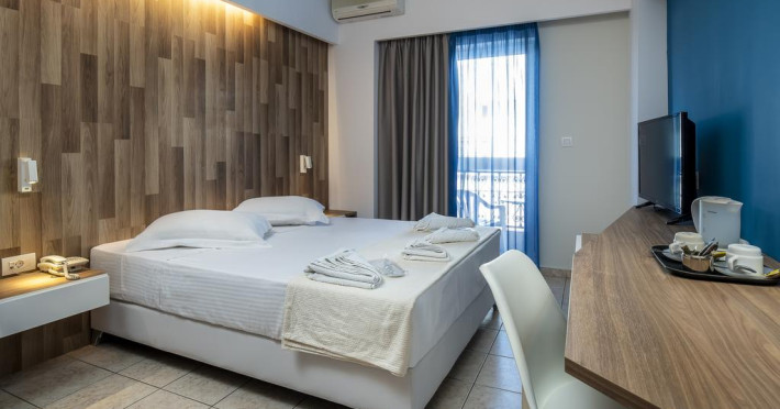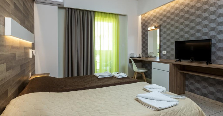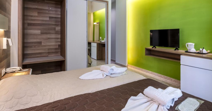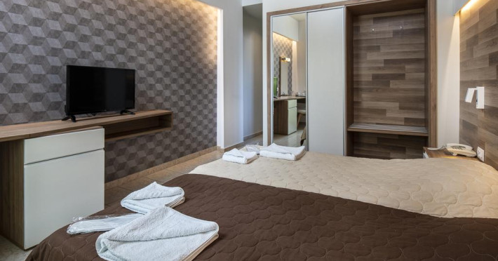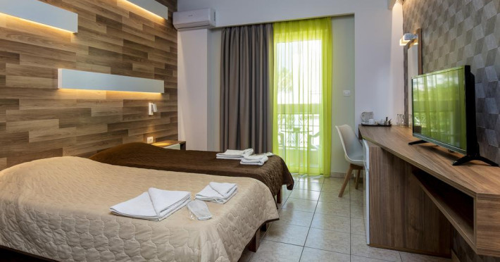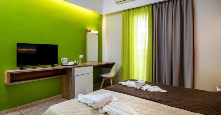 Camerele confortabile de la Olympia au pardoseală de gresie/ marmură, aer condiționat, Tv cu canale prin satelit și seif. Unele camere au balcon, cu vedere la grădină, unde oaspeții se pot relaxa în compania celor dragi. Fiecare cameră dispune de cană pentru prepararea apei calde. Oaspeții pot solicita serviciul de room service pentru a servi masa sau diverse băuturi. În camere există baie cu cadă sau duș ce are în dotare foehn și articole de toaletă gratuite. Oaspeții au acces gratuit la serviciul Wi-fi în camere. Curățenia in cameră se face zilnic. Toate camerele spațioase de la Olympia au zonă de relaxare cu canapea, ceea ce oferă un plus de confort. Fiecare unitate de cazare are frigider. Proprietatea oferă camere pentru nefumători.