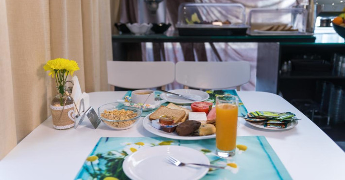 La proprietate există un snack-bar care oferă cafea, băuturi și gustări. Masa poate fi servită atât în interior, cît si în aer liber, pe terasă, în funcție de vreme.