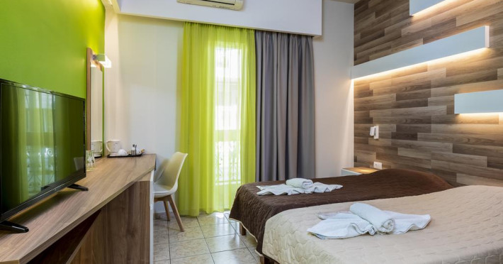 Olympia este o proprietate de 2 stele situată în Kos care oferă unități de cazare cu aer condiționat, grădină și o terasă unde oaspeții pot petrece timp împreună cu prietenii sau familia. Proprietatea are servicii de recepție cu program non - stop și închirieri auto. Se oferă acces gratuit la internet Wi-fi în spațiile publice. Parcarea este posibilă pe stradă, în imediata apropiere a proprietății.