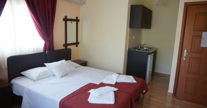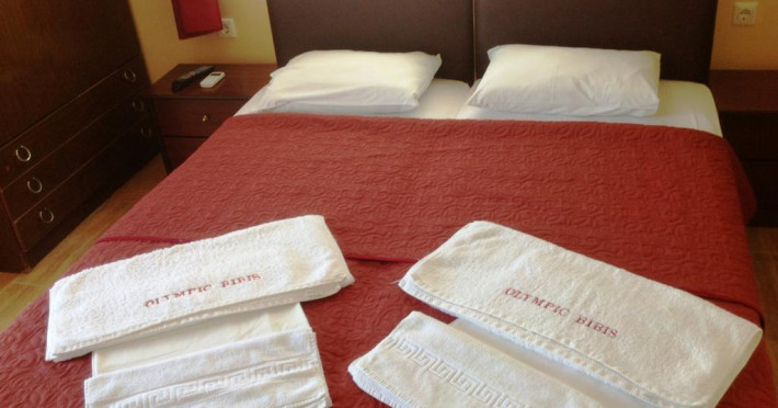 Camerele confortabile de la Olympic Bibis sunt dotate cu pardoseală de gresie/ marmură, aer condiționat și Tv. Camerele au balcon cu masă și scaune unde pot fi petrecute momente de relaxare. În camere există baie cu cadă sau duș. Oaspeții au acces gratuit la serviciul Wi-fi în camere. Curățenia in cameră se face zilnic. Fiecare unitate de cazare are frigider. Proprietatea oferă camere pentru familie cu o suprafață mai mare și un număr mai mare de paturi față de cele standard.