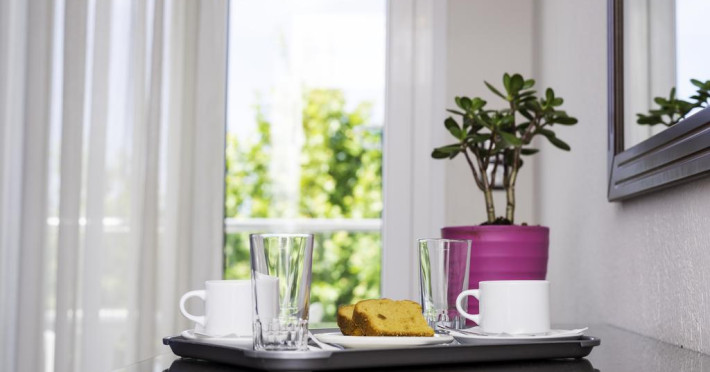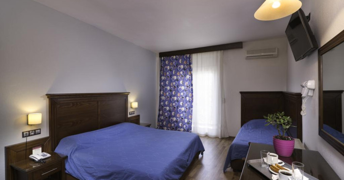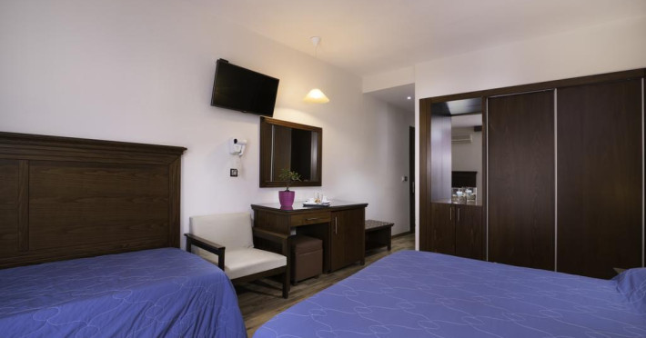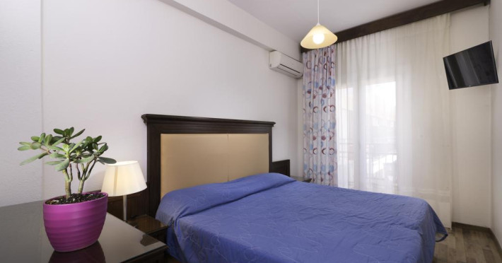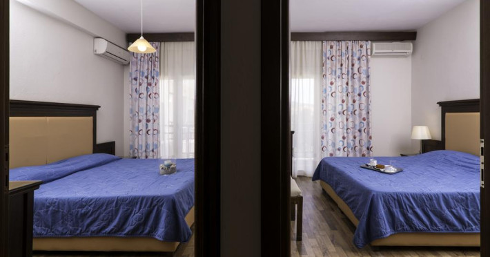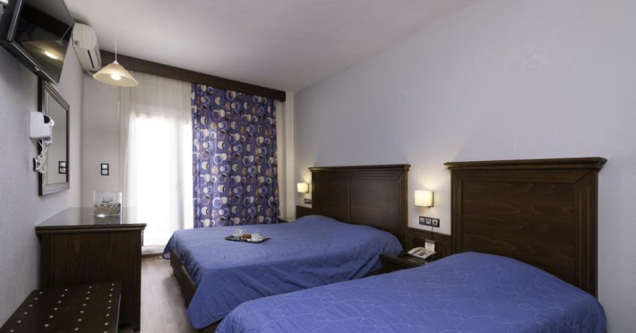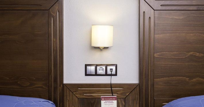 Fiecare cameră dispune de minibar și cană pentru preparare apă caldă. Camerele luminoase de la Olympion Hotel sunt dotate cu parchet, aer condiționat, Tv cu canale prin satelit și seif. În camere există baie cu foehn și articole de toaletă gratuite. Unele camere au balcon cu vedere la oraș sau la grădină. Oaspeții au acces gratuit la serviciul Wi-fi în camere. Curățenia in cameră se face zilnic. Fiecare unitate de cazare are frigider.