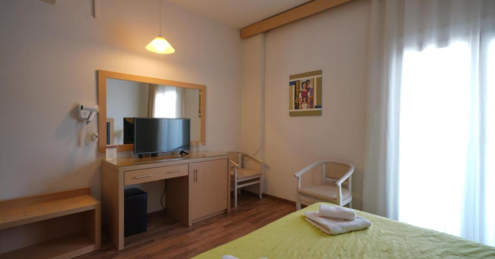 Un hotel potrivit atat celor care doresc un concediu de relaxare, cat si celor care vor o vacanta activa, datorita pozitionarii sale. Situat central în satul Potos din Thasos, hotelul Olympion este la numai 70 de metri de cea mai apropiată plajă. Are un restaurant fast-food şi serveşte zilnic un bufet de mic dejun pe terasa în aer liber acoperită. Toate camerele sunt dotate cu aer condiţionat si au un balcon cu vedere la grădină sau la zona plină de verdeaţă din jur. Toate sunt prevăzute cu TV prin satelit şi ceainic. Baia privată include papuci, halate de baie şi un uscător de păr.Localizare