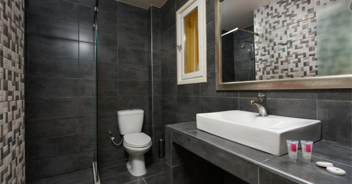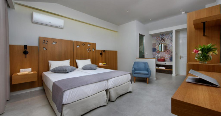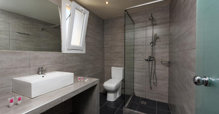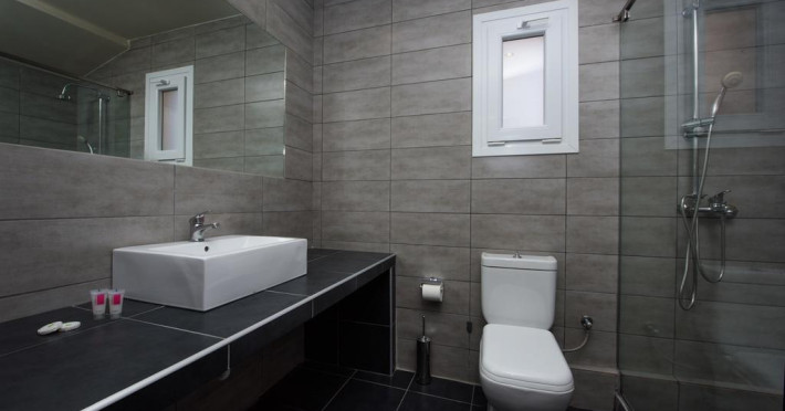 Camerele confortabile de la Olympion Village au pardoseală de gresie/ marmură, aer condiționat, Tv cu canale prin satelit și seif. Camerele au balcon cu masă și scaune unde pot fi petrecute momente de relaxare. În camere există baie cu cadă sau duș prevăzută cu foehn. Toate camerele spațioase de la Olympion Village au zonă de relaxare. Fiecare unitate de cazare are frigider. De asemenea, este disponibilă o zonă de luat masa. Proprietatea oferă camere pentru familie cu o suprafață mai mare și un număr mai mare de paturi față de cele standard. Se pot rezerva de asemenea camere pentru nefumători.