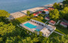 Facing a sandy beach on the blue Aegean Sea and nestled in a densely forested area on 52 acres of land, the Olympios Zeus complex provides the tourists with a carefree stay, setting it apart from many run of the mill, ‘mass tourism’ offerings available. It is just 89 kilometers from Thessaloniki and 118 kilometers from the airport. Katerini, the capital of the prefecture of Pieria, is just 20 kilometers away and the beautiful mountain village of Litohoro, dominated by the mythical Mt. Olympus is only four kilometers away. The seaside resort cities of Leptokaria and others are a short bus or car ride away.Full description