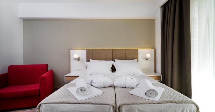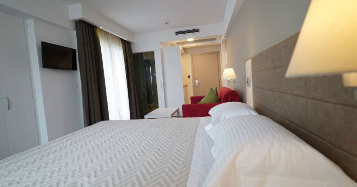 Camere Family Superior: aprox. 26mp si pot caza maximum 4 persoane; un pat dublu si o canapea dubla; papuci si halat de baie, Nespresso.