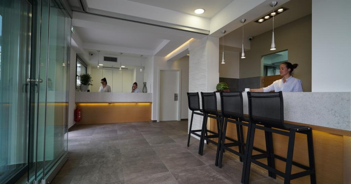 Facilitati hotel: receptie, bar, lift, sala de mic dejun, piscina, camera de bagaje.