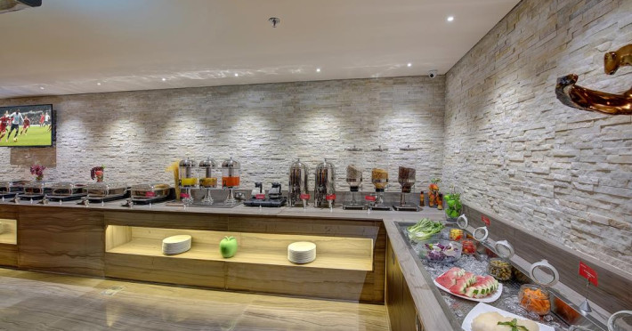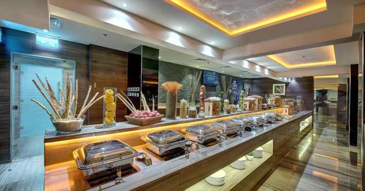 La Omega - Dubai oaspeții au la dispoziție un restaurant care servește mâncare în stil bufet și à la carte. Preparate din bucătăria internațională așteaptă să fie degustate în fiecare zi la micul dejun, prânz și cină. Masa poate fi servită atât în interior, cît si în aer liber, pe terasă, în funcție de vreme. În cadrul proprietății există și o cafenea ideală pentru o gustare rapidă.