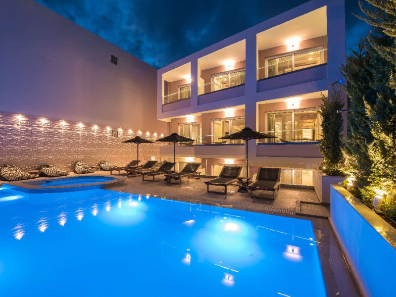 Descriere: Un nou hotel boutique, destinat in exclusivitate adultilor.Localizare: la aproximativ 150 m de plaja din zona Missiria, la aproximativ 4 km de Rethymno, la 70 km de aeroportul din Chania si 80 km de aeroportul din Heraklion.Dotari camere: Camerele Junior Suite au aprox 25 mp iar cele Junior Suite Big XL aprox 30 mp. Aceste tipuri de camere sunt open plan si sunt dotate cu aer conditionat (gratuit), acces internet WiFi (gratuit), telefon, seif (gratuit), televizor, fier si masa de calcat, plasa impotriva insectelor, mini bucatarie cu frigider si frierbator de apa, uscator de par, papuci si halate de baie, balcon/terasa.Facilitati hotel: restaurant a la carte, bar/restaurant (in cadrul hotelului Odyssia Beach), piscina, sezlonguri si umbrele (gratuite atat la piscina cat si pe plaja), prosoape de plaja (cu depozit).