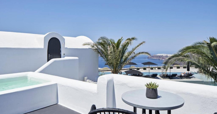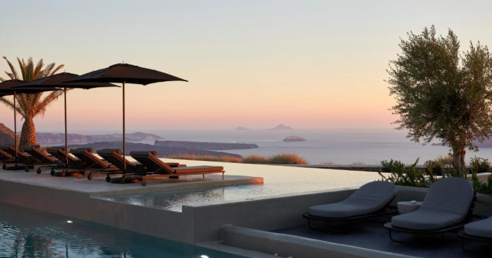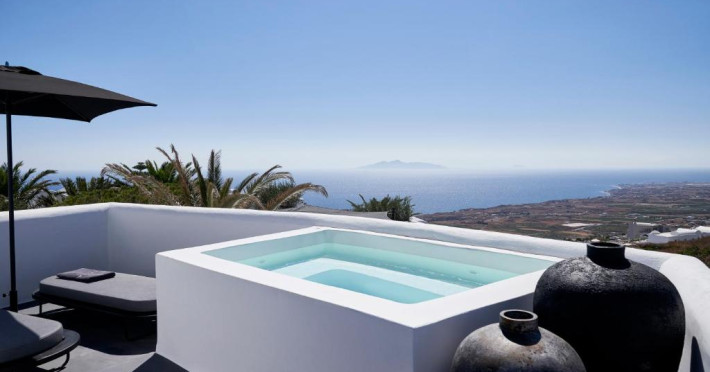Nobu Hotel Santorini, un boutique hotel de lux 5 stele, se află in pitorescul sat Imerovigli, oferind una dintre cele mai spectaculoase panorame asupra Mării Egee și a Caldera din Santorini.