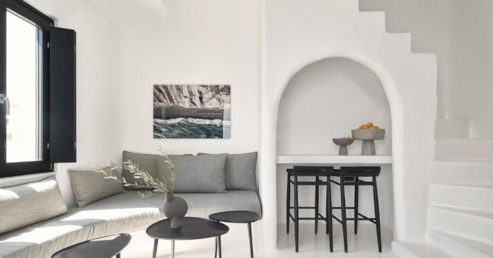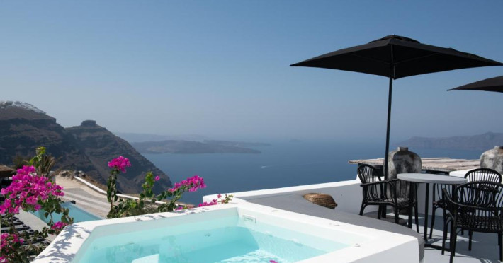 Poziționarea in Imerovigli, cunoscut ca "balconul Santorini", oferă oaspeților liniștea căutată, fiind la doar cațiva kilometri de animația din Fira și farmecul romantic al orașului Oia.