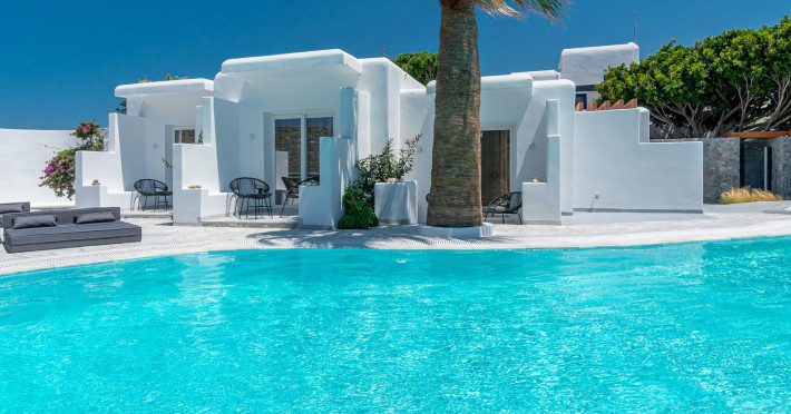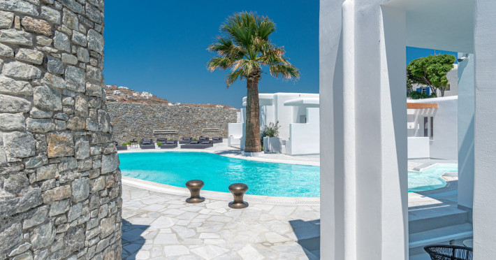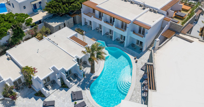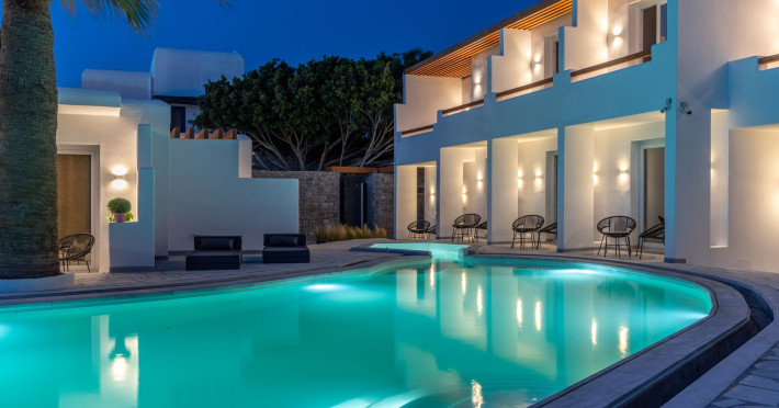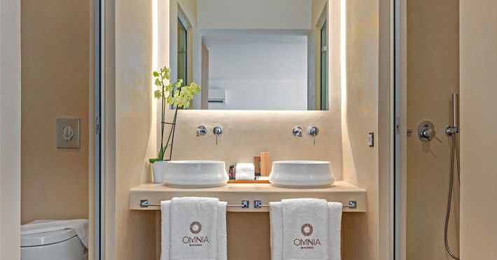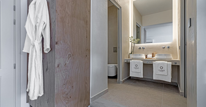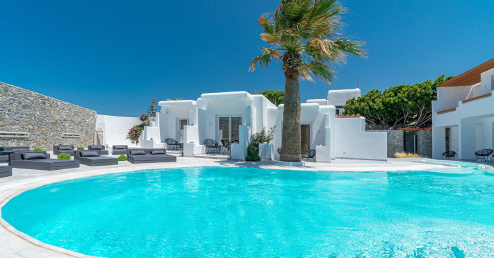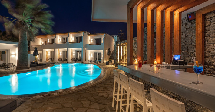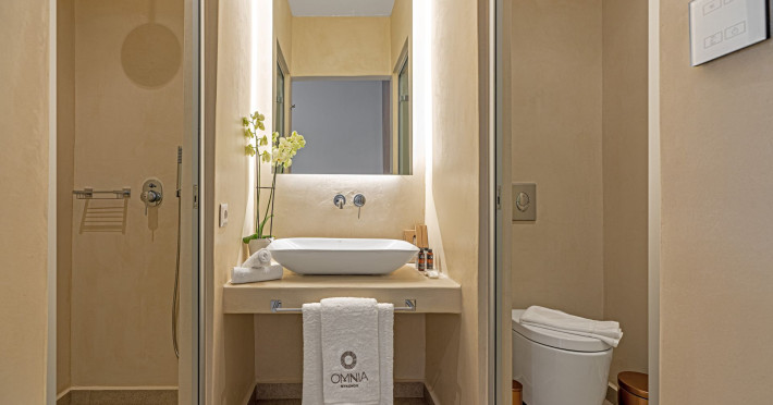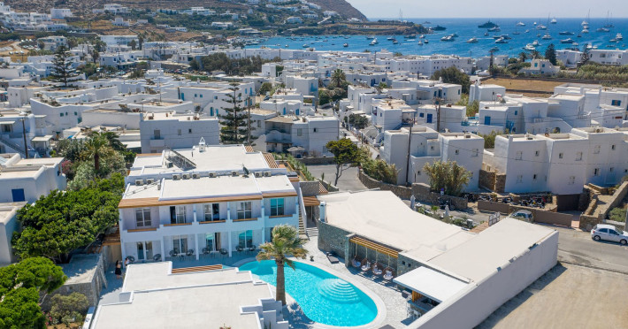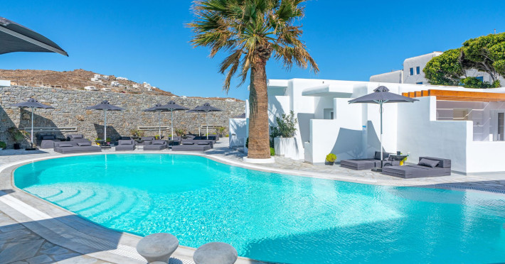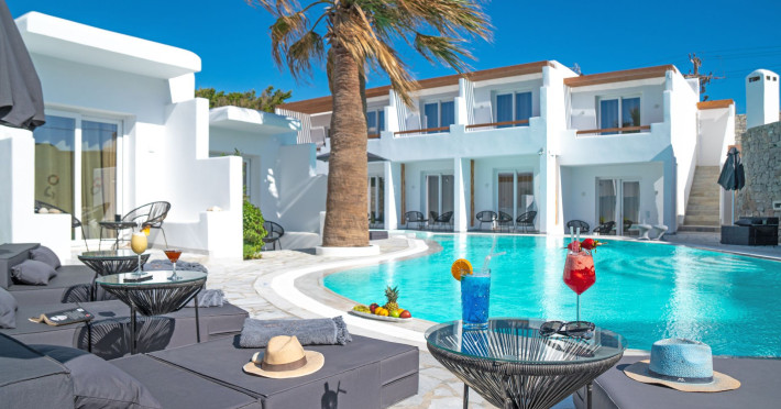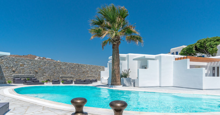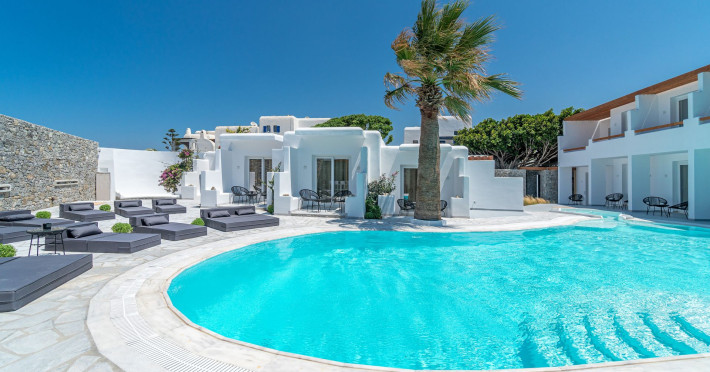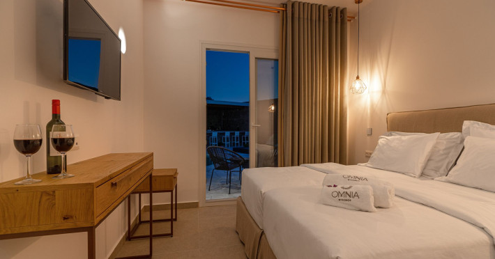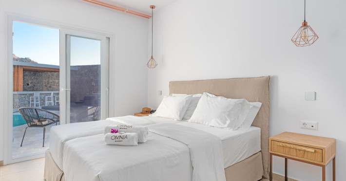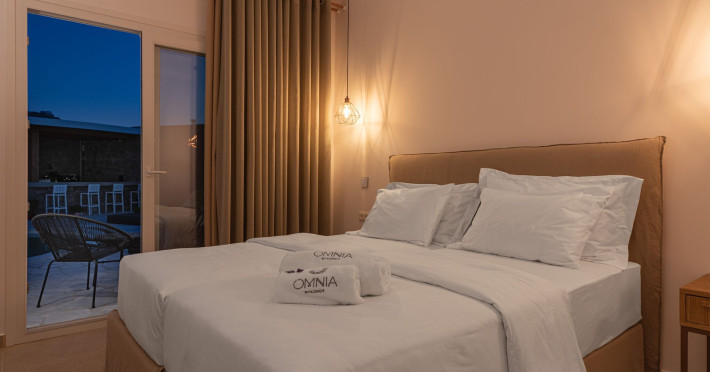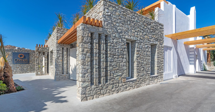 Reflecting the islandâs true spirit, the Omnia Mykonos boutique hotel, is all about dazzling indulgence, in real Mykonos fashion, at a stoneâs throw from the glistening Aegean Sea. Set amidst a luscious, manicured garden, surrounded by exotic flowers and indigenous plants, Omnia is a brand new, design-oriented hotel with a pool, in scenic, cosmopolitan Ornos, just 200 meters away from the homonymous golden sandy beach, and a mere 2km from the iconic Chora. Advantageously located at the it crowdâs favorite swimming and meeting spot, the Omnia Mykonos boutique hotel amalgamates premium aesthetics in synch with the surroundings, with the latest creature comforts, to grant you an all access pass to the good life. With optimum ease and peace guaranteed, at Omnia Mykonos boutique hotel, you may just take the time to experience every moment fully, surrounded by your loved ones. Relax at your sumptuous, characteristically spacious suite; enjoy your private, fragrant garden; work on your tan by the side of the spool; or have a signature cocktail -or two- at the bar. You may also just pop at the beach next door, to sample the trademark Mykonian exotic waters; rub shoulders with the glitterati; and savor the whole island vibe. Blending the sheer simplicity of Cycladic beauty with the delights of world class hospitality and an atmosphere tailor-made for easy-going holidays, the Omnia boutique hotel in Mykonos, Ornos, offers you original experiences that leave you with unforgettable memories, and some great stories to tell.Datorita dinamicitatii domeniului disponibilitatea ofertelor se modifica de la un moment la altul. De aceea ofertele sunt valabile in limita locurilor disponibile. Agentia nu este responsabila pentru eventualele neconcordante care pot aparea intre informatiile privind tarifele si alte detalii din site si informatiile primite in agentie. In aceste cazuri vor avea prioritate, intotdeauna, informatiile primite in agentie.
