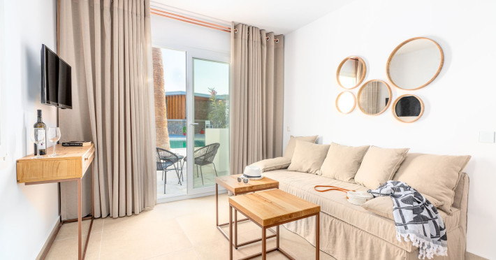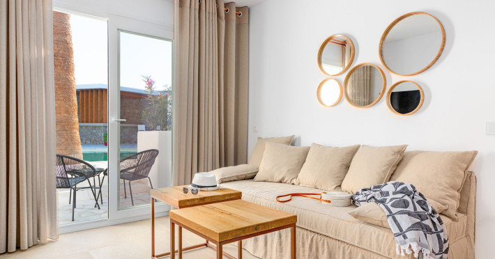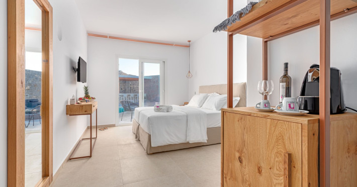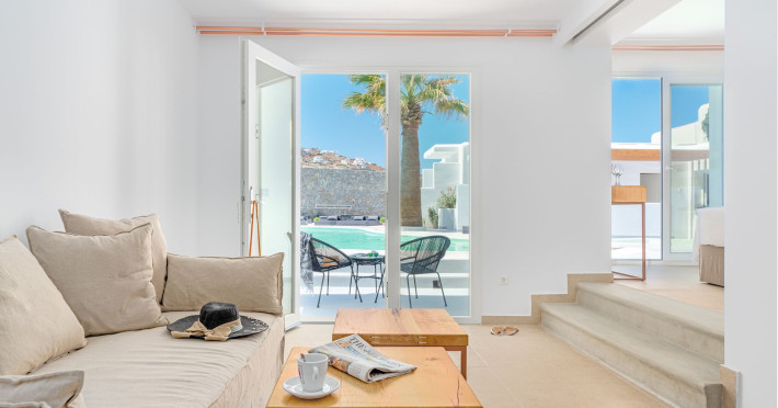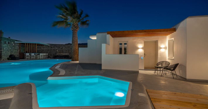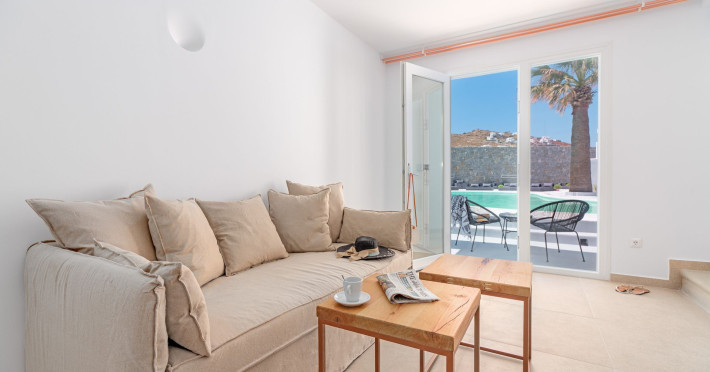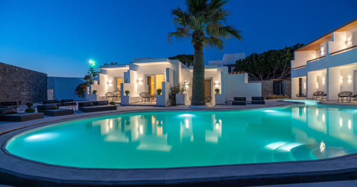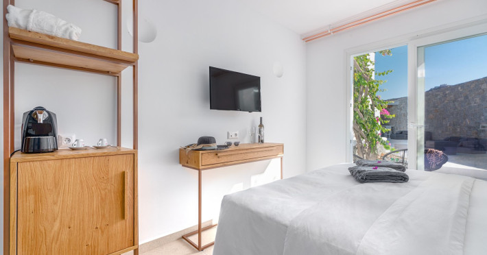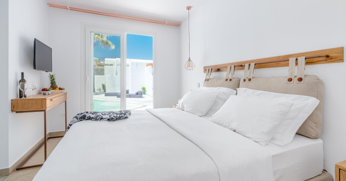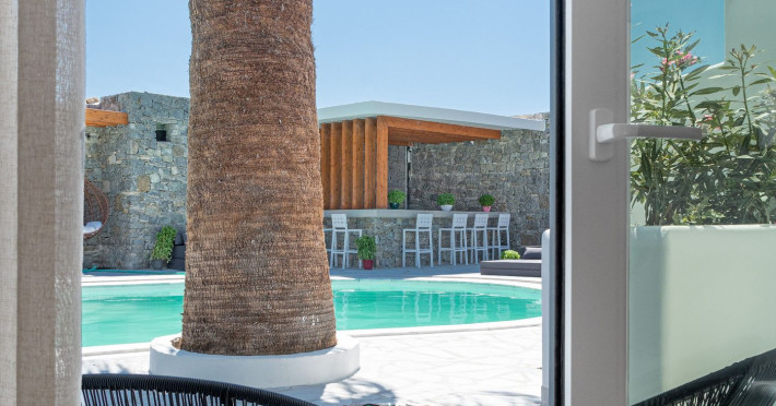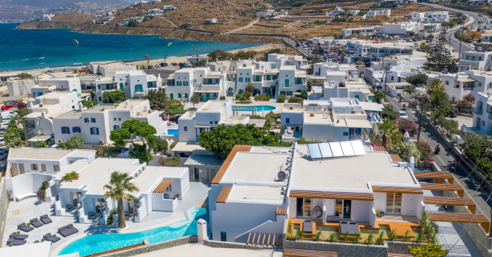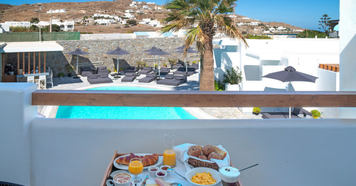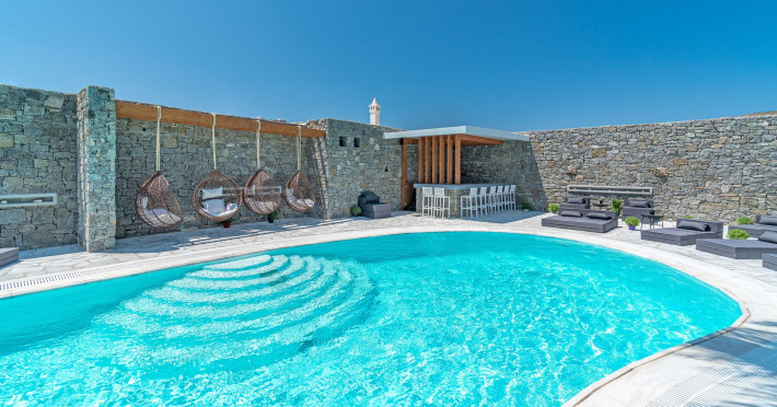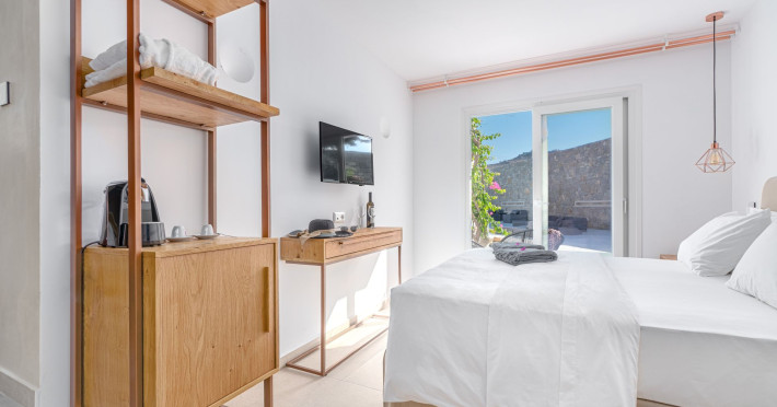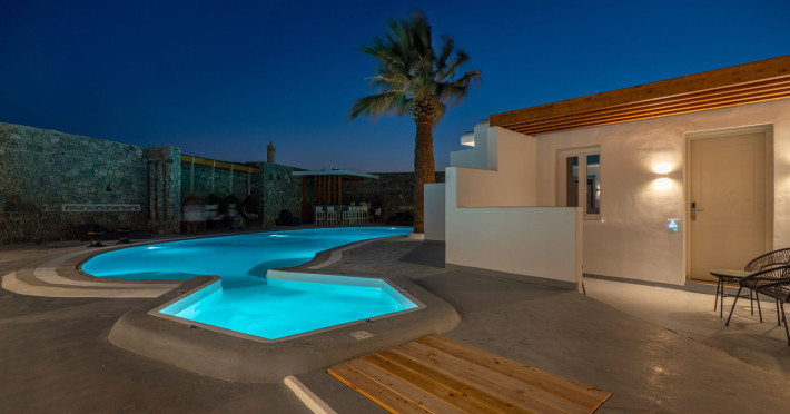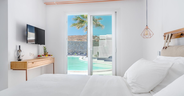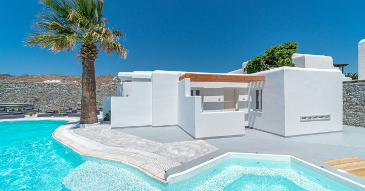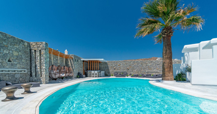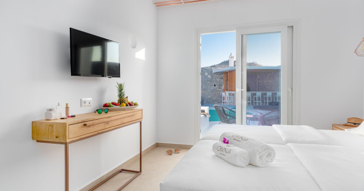 Reflecting the islandâs true spirit, the Omnia Mykonos boutique hotel, is all about dazzling indulgence, in real Mykonos fashion, at a stoneâs throw from the glistening Aegean Sea. Set amidst a luscious, manicured garden, surrounded by exotic flowers and indigenous plants, Omnia is a brand new, design-oriented hotel with a pool, in scenic, cosmopolitan Ornos, just 200 meters away from the homonymous golden sandy beach, and a mere 2km from the iconic Chora. Advantageously located at the it crowdâs favorite swimming and meeting spot, the Omnia Mykonos boutique hotel amalgamates premium aesthetics in synch with the surroundings, with the latest creature comforts, to grant you an all access pass to the good life. With optimum ease and peace guaranteed, at Omnia Mykonos boutique hotel, you may just take the time to experience every moment fully, surrounded by your loved ones. Relax at your sumptuous, characteristically spacious suite; enjoy your private, fragrant garden; work on your tan by the side of the spool; or have a signature cocktail -or two- at the bar. You may also just pop at the beach next door, to sample the trademark Mykonian exotic waters; rub shoulders with the glitterati; and savor the whole island vibe. Blending the sheer simplicity of Cycladic beauty with the delights of world class hospitality and an atmosphere tailor-made for easy-going holidays, the Omnia boutique hotel in Mykonos, Ornos, offers you original experiences that leave you with unforgettable memories, and some great stories to tell.Datorita dinamicitatii domeniului disponibilitatea ofertelor se modifica de la un moment la altul. De aceea ofertele sunt valabile in limita locurilor disponibile. Agentia nu este responsabila pentru eventualele neconcordante care pot aparea intre informatiile privind tarifele si alte detalii din site si informatiile primite in agentie. In aceste cazuri vor avea prioritate, intotdeauna, informatiile primite in agentie.