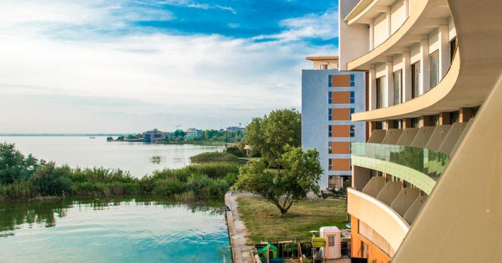 HOTEL ON PLONGE JUNIOR este situat la intrarea in statiunea Mamaia, vis a vis de parcul de distractii Aqua Magic, pe malul Lacului Siutghiol, la 300 de m de plaja. Este un hotel micut si cochet ce dispune de 45 spatii de cazare: 3 suite cu vedere spre statiune, 12 camere twin cu balcon si vedere spre lac, 24 camere twin cu balcon si vedere spre lac si 6 camere economy cu vedere spre statiuneVa informam ca incepand cu sezonul 2023, se va incasa la receptie in momentul cazarii taxa de statiune, reprezentand 1% din valoarea tarifului de cazare fara T.V.A, pentru fiecare noapte de cazare conform HCL NR. 614/27.12.2022Dotari camere