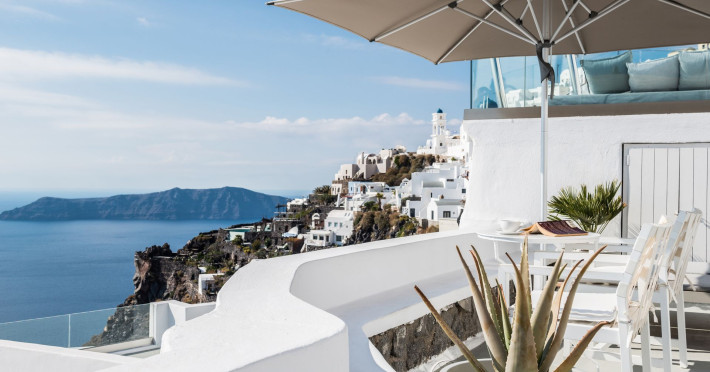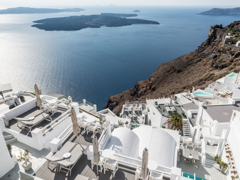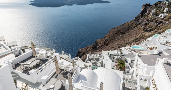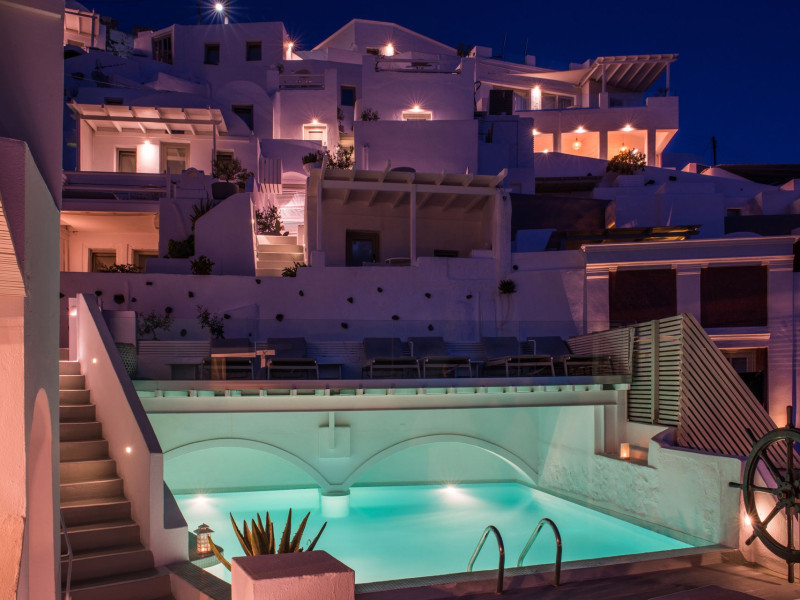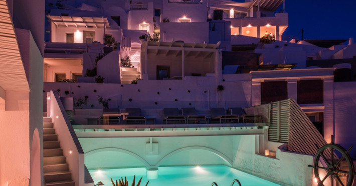 ON THE ROCKS - SANTORINIHotel Location: A member of Small Luxury Hotels, On The Rocks Hotel is situated 200 meters above the Santorini Caldera basin, in the famous village of Imerovigli, 10 minutes from the island’s capital, Fira town. Easily accessible via air and boat transportation, the hotel is 10 km from Santorini airport and Athinios port.Architecture: Aegean Cycladic architectureAccommodation: Standard Double Room with caldera view (10-12m2): Bedroom, balcony, sea view, bathroom with shower.Superior Double Room with caldera view (20-25m2): Bedroom, balcony, sea view, bathroom with shower.Suite with caldera view (up to 30m2): Bedroom, sitting area, balcony, sea view, bathroom with shower.Honeymoon Suite with Hot Tub & caldera view (up to 35m2): Bedroom, living room, indoor or outdoor hot tub, veranda, sea view, bathroom with shower.Master Suite with outdoor private pool & caldera view (up to 45m2): Bedroom, living room, bathroom with shower, large veranda with private outdoor dip pool and sea view.Room Facilities: All Rooms have air conditioning, satellite TV, direct dial phone, safe deposit boxes, mini bar, hair dryer, bathrobes, slippers, branded bathroom amenities, kettle, branded espresso machine.Hotel Profile: On The Rocks has 24 hrs Front Desk, Swimming Pool, Pool Bar and Snack Bar with comfort food menu, Spa Room, Free wi-fi access.Guest Services: Front Desk, Bell Boy service, Travel Desk, Personal Concierge service, Room Service, Daily maid service, Turn down service, Daily Room Serviced breakfast.Spa Facilities: On The Rocks Spa Room has a massage bed and a jet shower. Massage treatments and revitalizing treatments as well as manicure and pedicure are realized by experienced professionals. Pool Bar: Next to the swimming pool, you may enjoy your favorite cooling drinks, cocktails, light snacks and delicacies, relaxing with soft music and the exquisite view in the most romantic spot of Caldera.ON THE ROCKS - SANTORINIHotel Location: A member of Small Luxury Hotels, On The Rocks Hotel is situated 200 meters above the Santorini Caldera basin, in the famous village of Imerovigli, 10 minutes from the island’s capital, Fira town. Easily accessible via air and boat transportation, the hotel is 10 km from Santorini airport and Athinios port.Architecture: Aegean Cycladic architectureAccommodation: Standard Double Room with caldera view (10-12m2): Bedroom, balcony, sea view, bathroom with shower.Superior Double Room with caldera view (20-25m2): Bedroom, balcony, sea view, bathroom with shower.Suite with caldera view (up to 30m2): Bedroom, sitting area, balcony, sea view, bathroom with shower.Honeymoon Suite with Hot Tub & caldera view (up to 35m2): Bedroom, living room, indoor or outdoor hot tub, veranda, sea view, bathroom with shower.Master Suite with outdoor private pool & caldera view (up to 45m2): Bedroom, living room, bathroom with shower, large veranda with private outdoor dip pool and sea view.Room Facilities: All Rooms have air conditioning, satellite TV, direct dial phone, safe deposit boxes, mini bar, hair dryer, bathrobes, slippers, branded bathroom amenities, kettle, branded espresso machine.Hotel Profile: On The Rocks has 24 hrs Front Desk, Swimming Pool, Pool Bar and Snack Bar with comfort food menu, Spa Room, Free wi-fi access.Guest Services: Front Desk, Bell Boy service, Travel Desk, Personal Concierge service, Room Service, Daily maid service, Turn down service, Daily Room Serviced breakfast.Spa Facilities: On The Rocks Spa Room has a massage bed and a jet shower. Massage treatments and revitalizing treatments as well as manicure and pedicure are realized by experienced professionals. Pool Bar: Next to the swimming pool, you may enjoy your favorite cooling drinks, cocktails, light snacks and delicacies, relaxing with soft music and the exquisite view in the most romantic spot of Caldera.