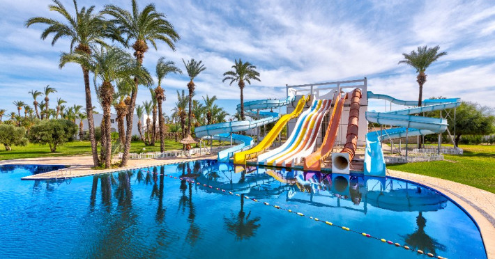 3 piscine exterioare cu apa dulce (una de cca. 1200 mp cu aquapark deschis la ore fixe), piscina interioara (iarna, cu zona pentru copii).