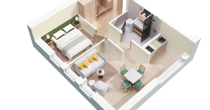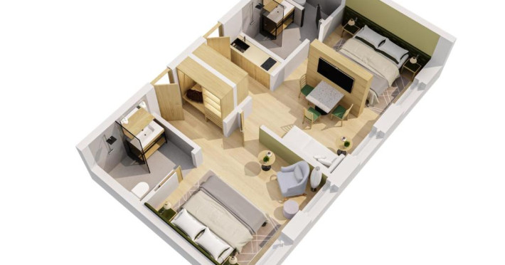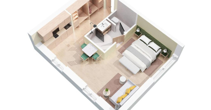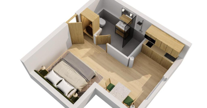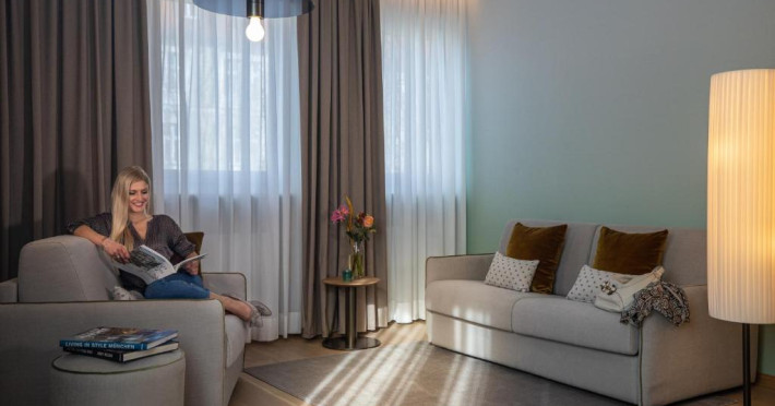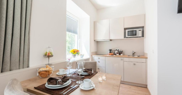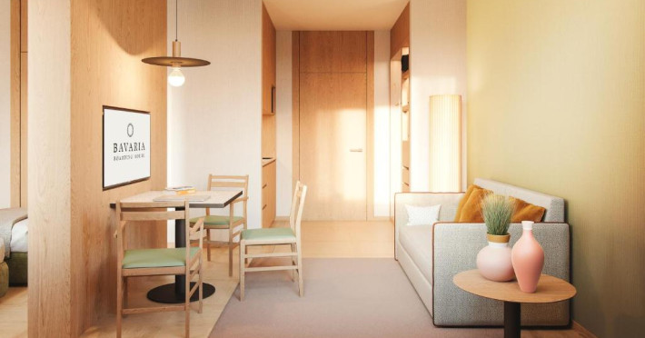 Aceste apartamente au camere luminoase și tavan inalt. Fiecare bucătărie este dotată cu prăjitor de paine și plită. Băile private au cabină de dus. One Bavaria Homes oferă prosoape și lenjerie de pat. In noiembrie 2018, au fost deschise mai multe apartamente noi, proiectate exclusiv de Matteo Thun, celebrul arhitect și designer.
