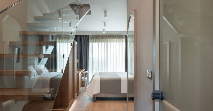 Suita Duplex Deluxe: 40 mp, capacitate maxima 4 persoane, vedere la piscina sau la mare, la parter se afla un pat matrimonial, iar la etaj 2 paturi twin