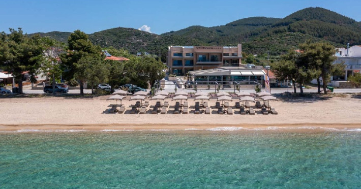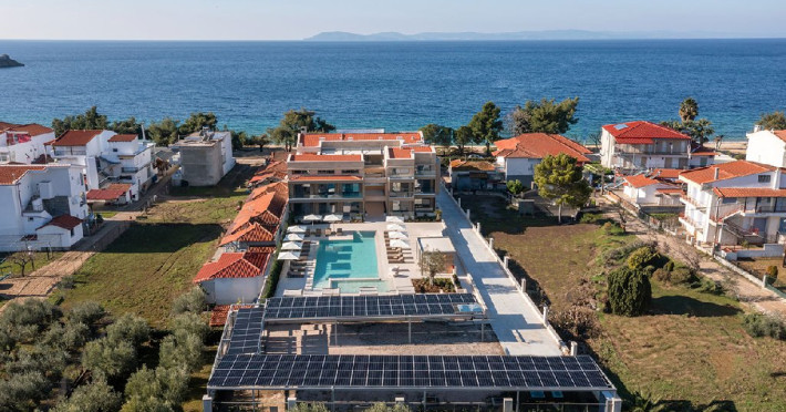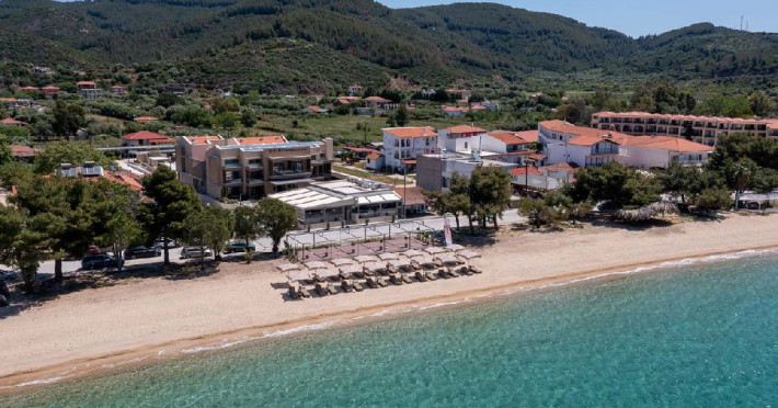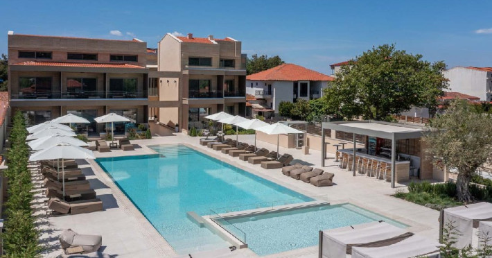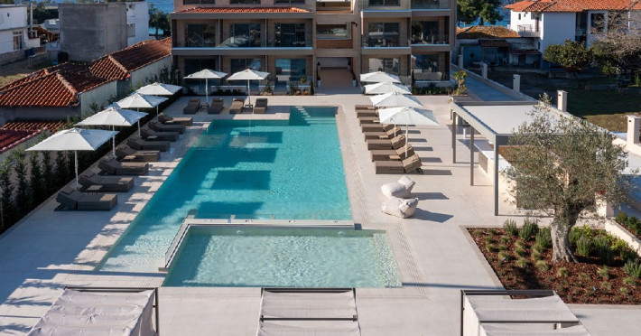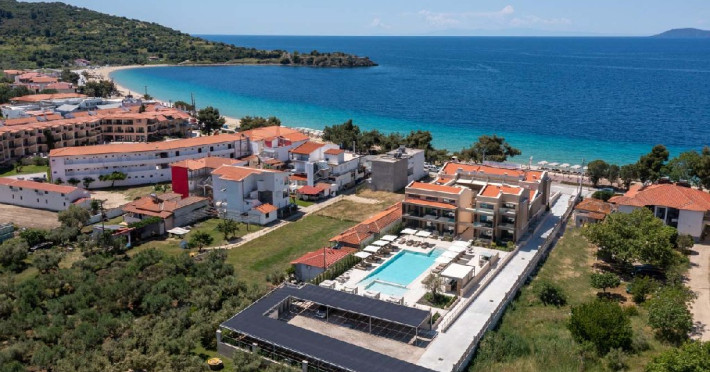 Localizare: Boutique Hotel Oniro se afla pe plaja din Toroni (Sithonia - Halkidiki) si promite o vacanta cu servicii de lux. Unitatea de cazare s-a deschis in vara 2024 si este construita tip resort, avand 2 cladiri invecinate.Facilitati hotel: receptie 24/7, lobby, lift, camera pentru bagaje, restaurant a la carte (12:00-23:00), serviciu de transfer (contra cost), plaja privata cu sezlonguri si umbrele (gratuite), prosoape de plaja, piscina exterioara, hidromasaj, pool bar, piscina incalzita, camere pentru persoane cu dizabilitati, parcare privata (gratuita), patuturi de bebelusi, baby sitting (la cerere), Wi-Fi in toate zonele publice si pe plaja, servicii de fotocopiere, plata cu cardul