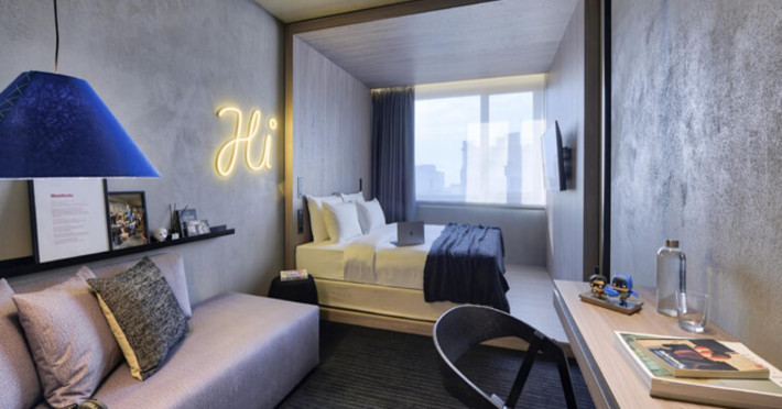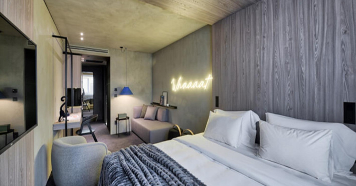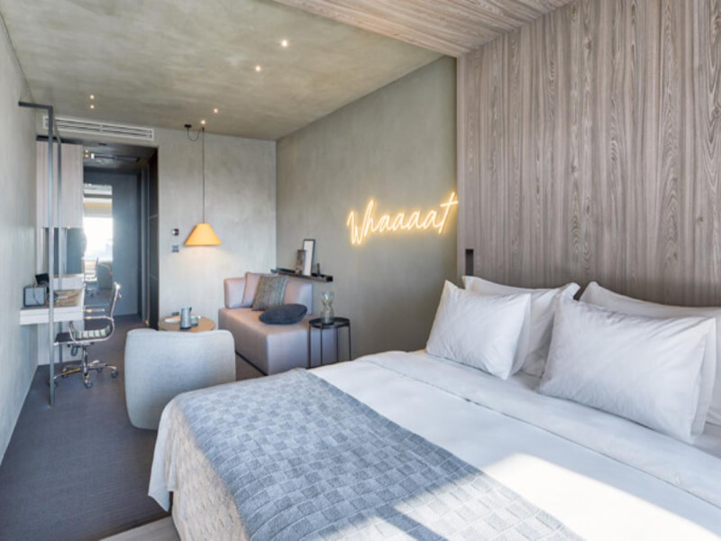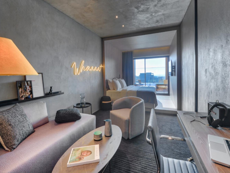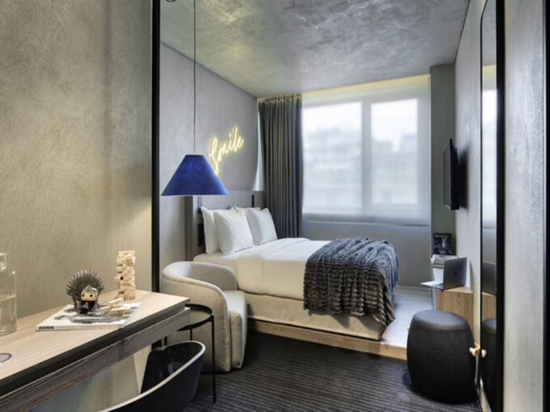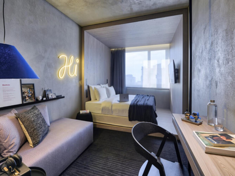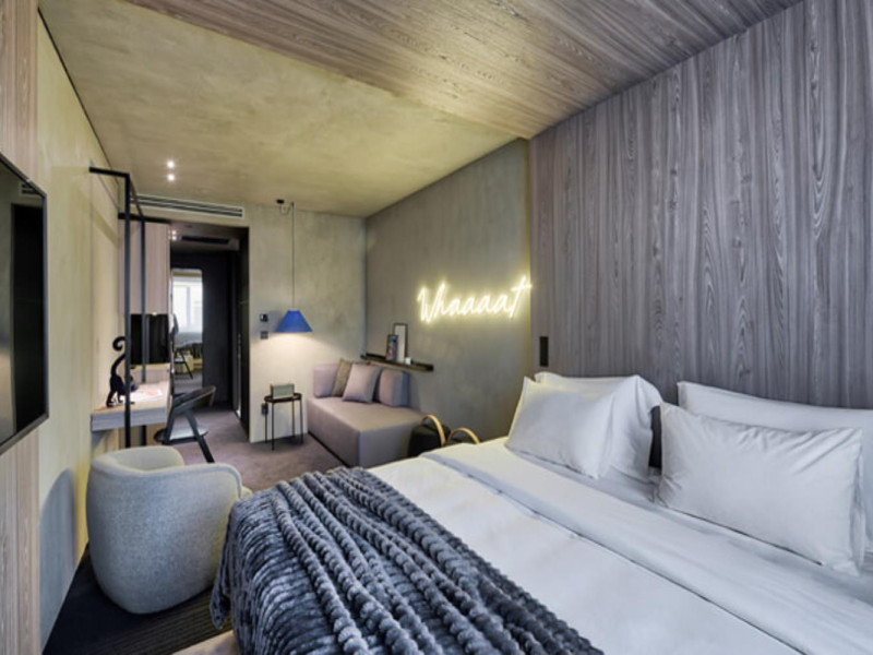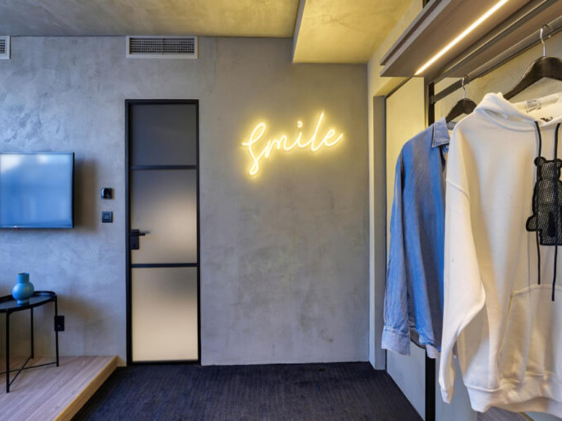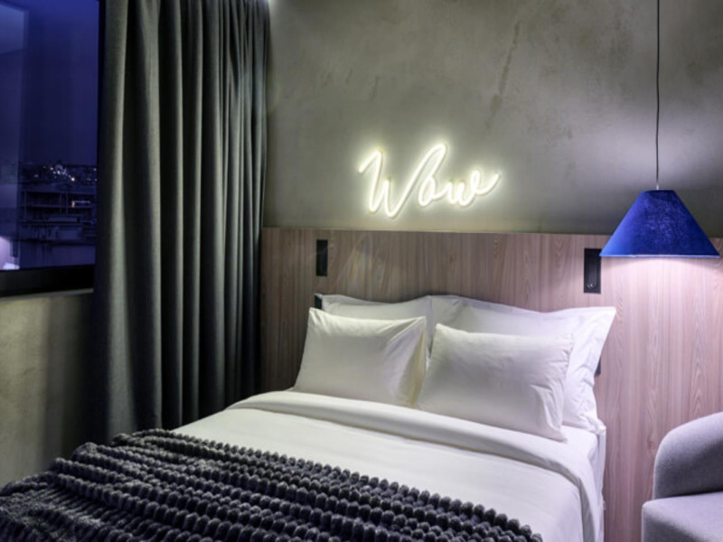 ONOMA is a hotel that you can live inside of it as you live in your home but with more technology and innovation.You can grab a hot dog from Good Mood Food Restaurant, you can taste you own cocktail with your name on it from Street Art Bar or you can also count the stars and see galaxies with our telescope from the Rooftop of ONOMA named Cloud Bar. Since we are talking about galaxies at ONOMA you can discover your own: if you want yours to be perfumed try our perfume bar, if you want to be creative go straight away to the first floor for meetings in a Ball Pit and be a true bussiness- human being, if you want to be playful come to the halfloor of ONOMA for a digital match on PS5 or for an analog one at the Basketball Court in our backyard. After all these things you can relax in your room which can checked in on your own and unlock it with your mobile. When we say “relax”, you don’t even have to get up for the curtains beacause you are controlling everything in it from a tablet. You can choose the one that suits you through different types.