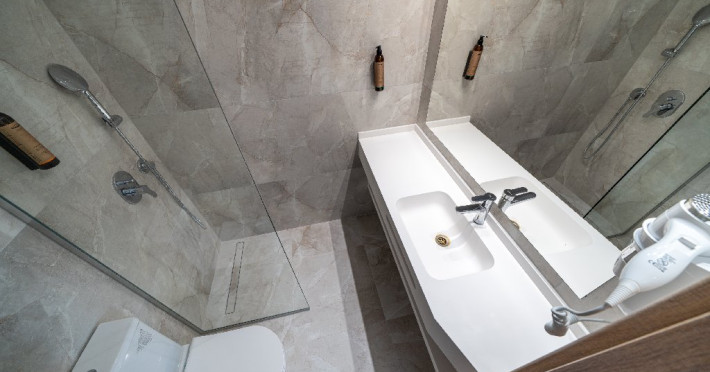 Apartamentele au vedere spre mare si sunt formate din living (canapea extensibila), dormitor (pat matrimonial), dressing, baie, 2 balcoane. Intre cele doua camere exista usa despartitoare. Au aproximativ 40 mp si sunt dotate cu: 2 televizoare LED (diagonala 80 cm), aer conditionat, feon, minibar, baie cu dus, internet wireless, 2 balcoane cu mobilier si uscator, mocheta, plasa impotriva insectelor.