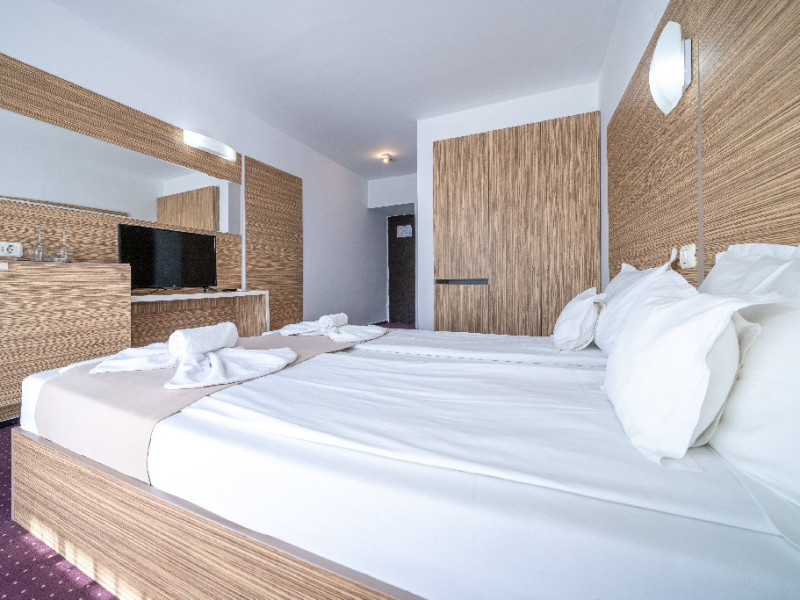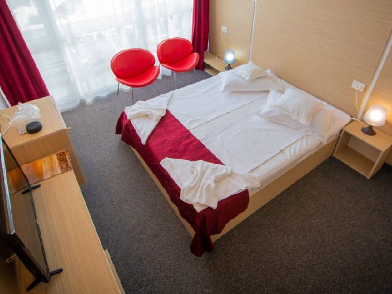 Camerele duble superioare sunt situate la etajele 4, 5 si 6, sunt dotate cu paturi matrimoniale (160x200) si au vedere spre mare sau spre padurea Comorova. Sunt renovate complet in anii 2018-2020, au 19 mp si sunt dotate cu televizor LED (diagonala 80 cm), aer conditionat, minibar, feon, internet wireless, balcon cu mobilier si uscator, mocheta sau parchet, plasa impotriva insectelor. Baile sunt renovate, sunt dotate cu dus si sunt mai spatioase ca baile camerelor standard. Toate camerele au in dotare fotoliu extensibil.