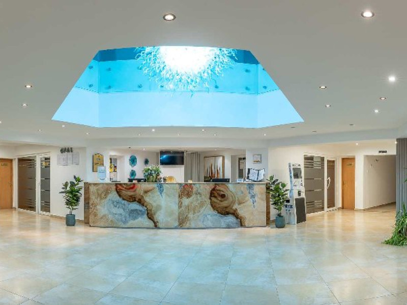 HOTEL OPAL, situat in partea nordica a statiunii Cap Aurora, fiind amplasat pe faleza, la 50 m de plaja si dispune de 217 camere duble, dintre care 150 sunt cu vedere la mare, 15 apartamente cu living, dormitor si 2 balcoane cu vedere spre mare.