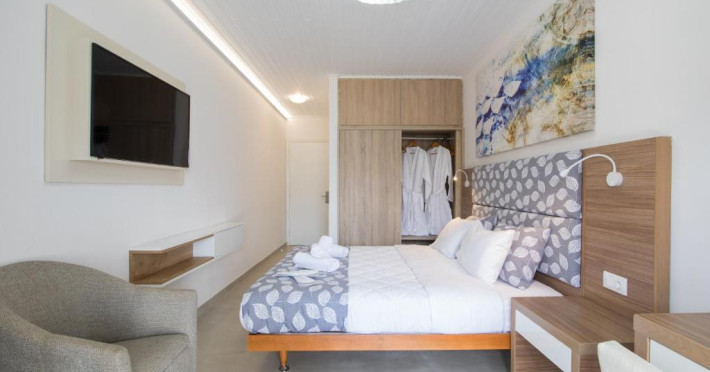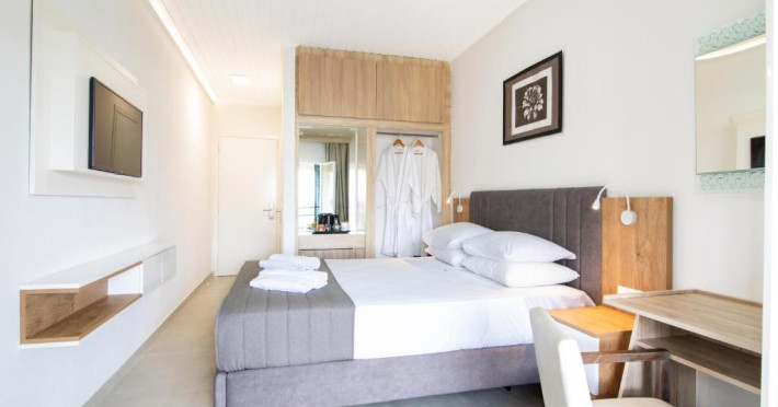 Acest hotel pune la dispoziție camere cu aerul, birou, cutie de valori, televizor cu ecran plat, balcon și baie proprie cu duș. Baia proprie oferă o cadă, articole de toaletă gratuite și un uscător de păr. La OPERA BLUE Hotel Gouvia Corfu, fiecare oferă lenjerie de pat și prosoape.